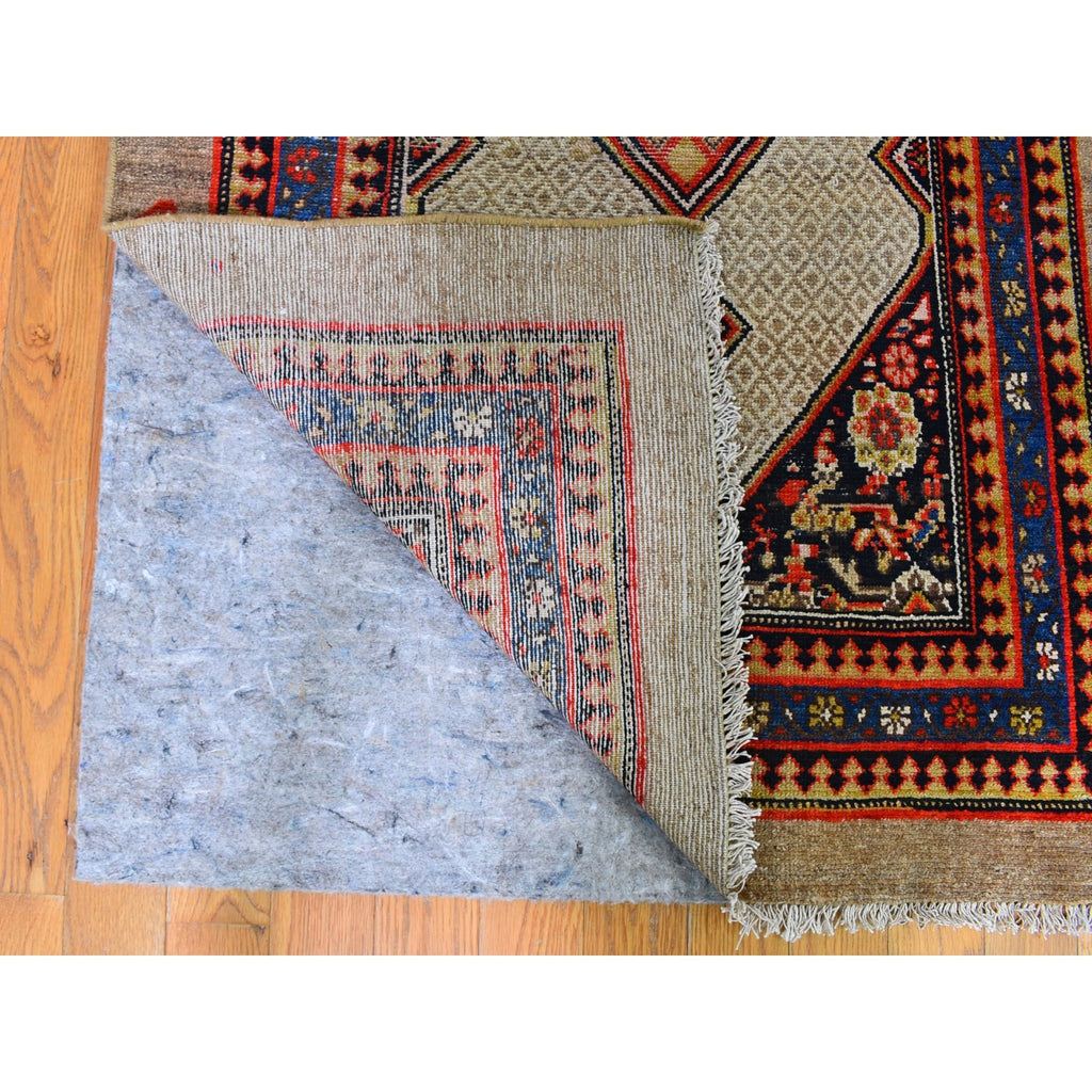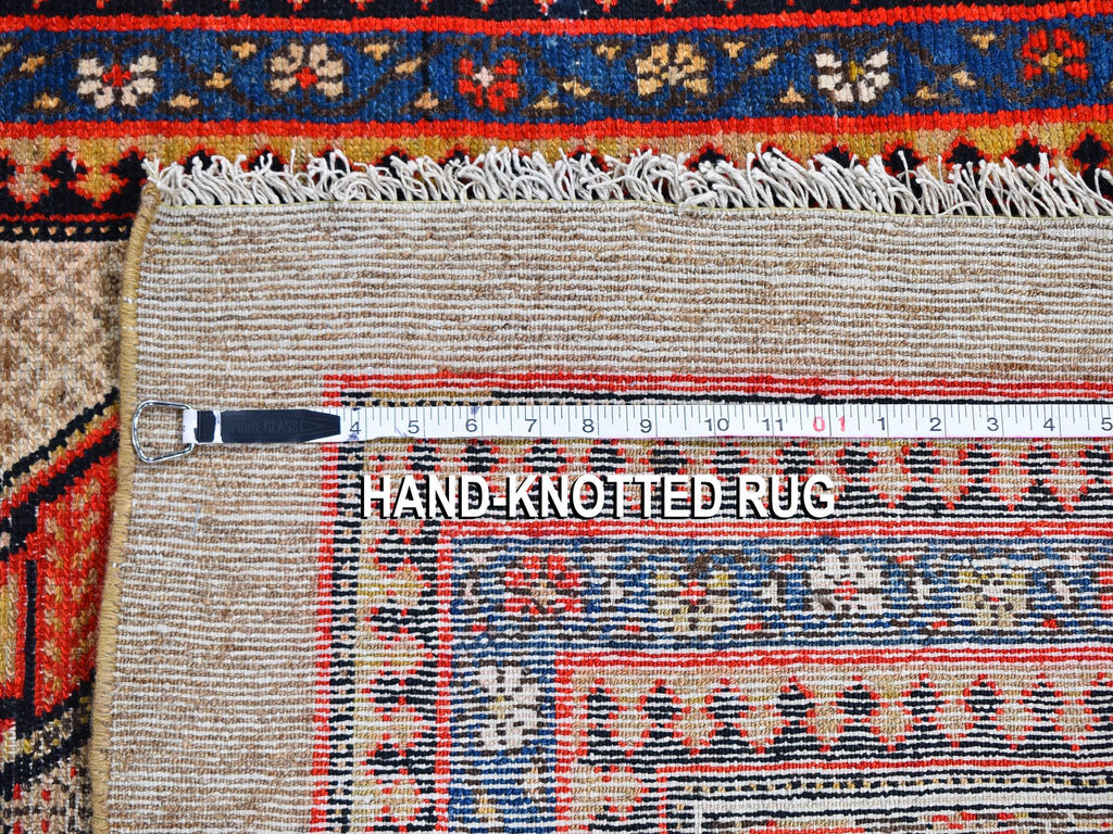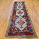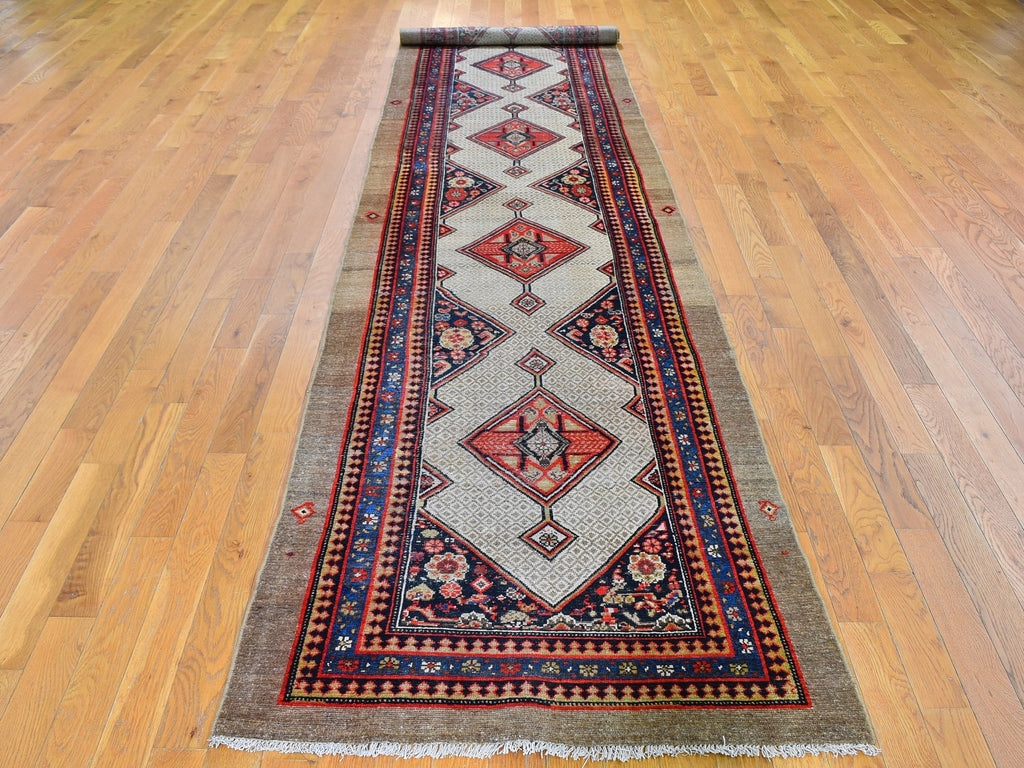 Condition: Used Weave Type: Hand Knotted Shape: Runner Size: 3’2″ x 15’9″ Main Color: Brown Border Color: Navy Blue Other Colors: Black, Gray, Red, Rose, Yellow, Dark Brown Top Material: Wool Base Material: Cotton Collection: Antique Rug Number: MOA10259511