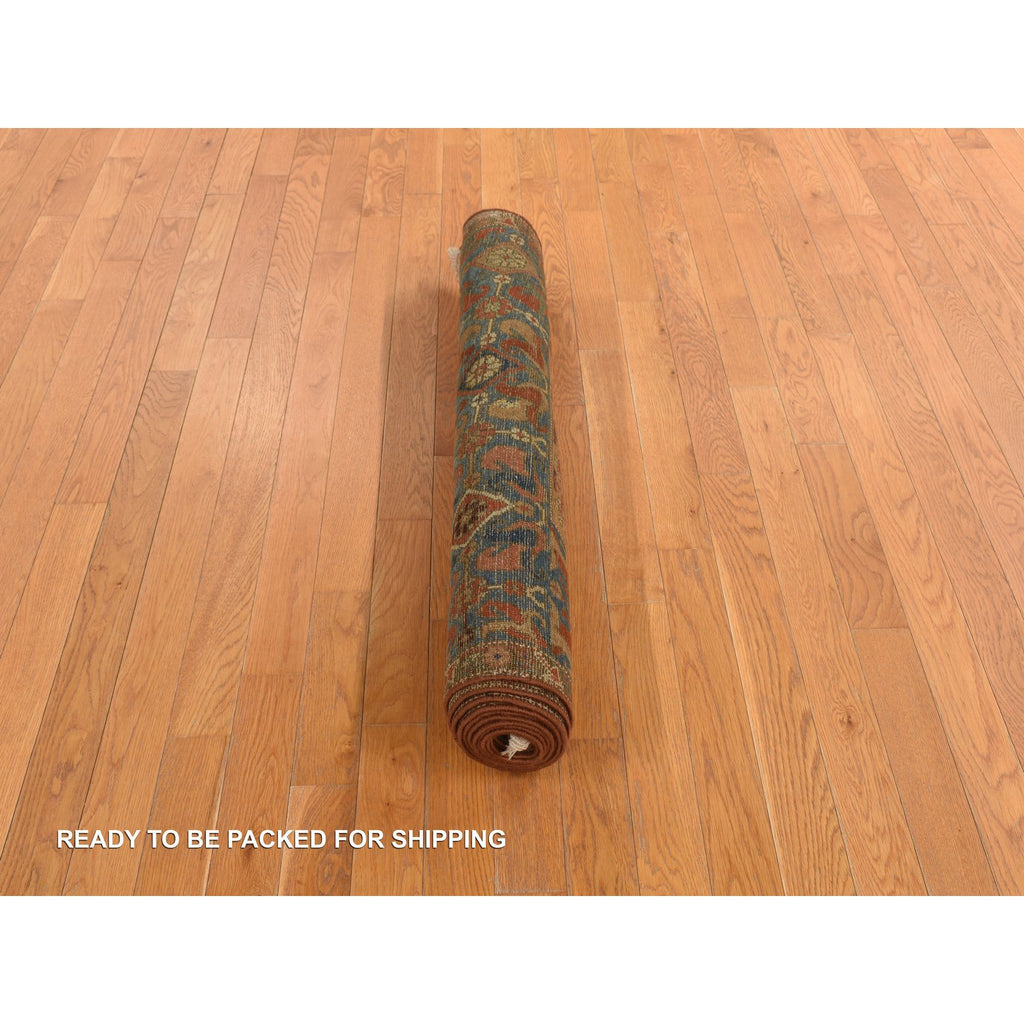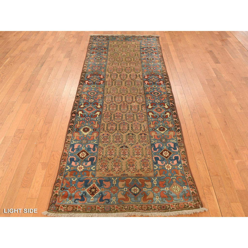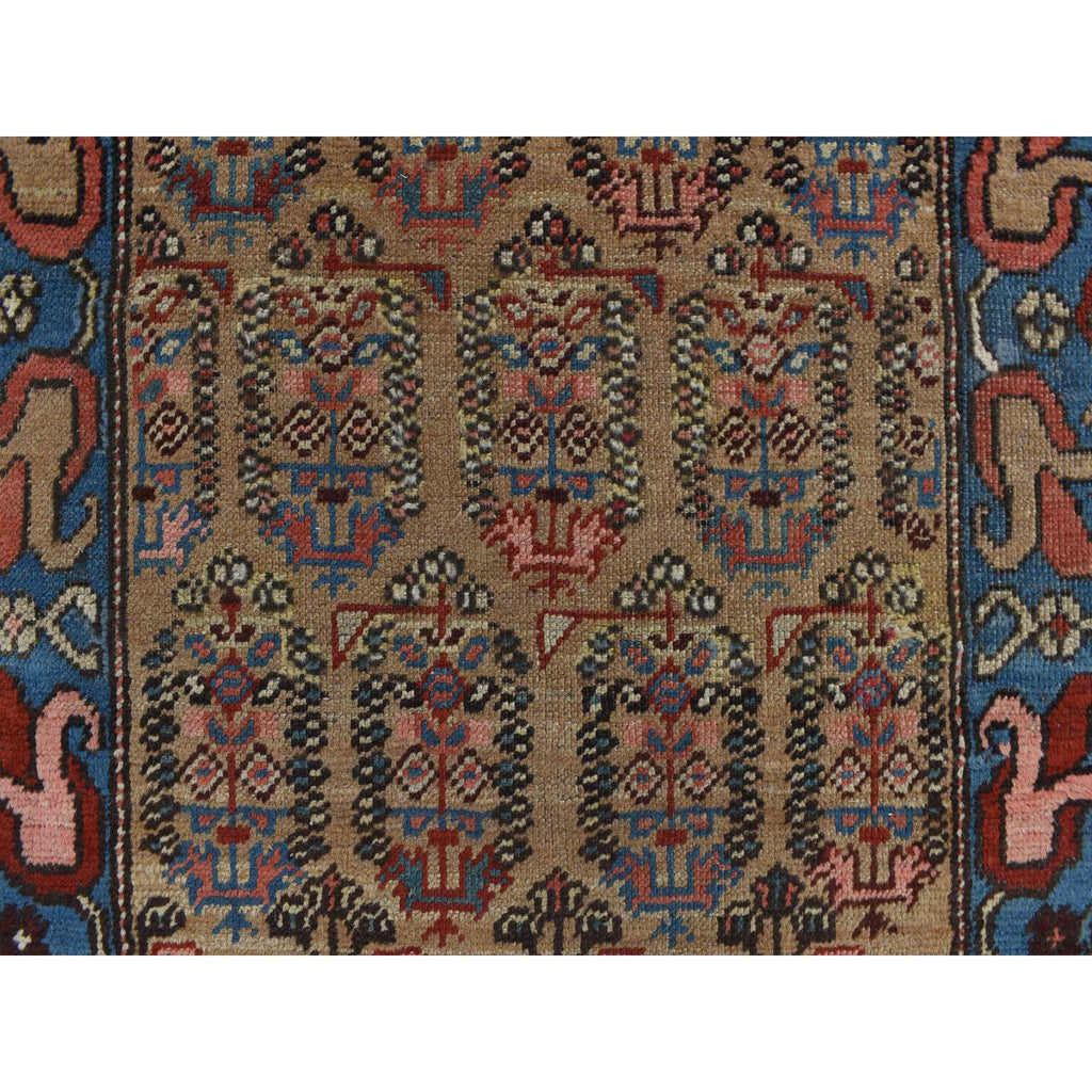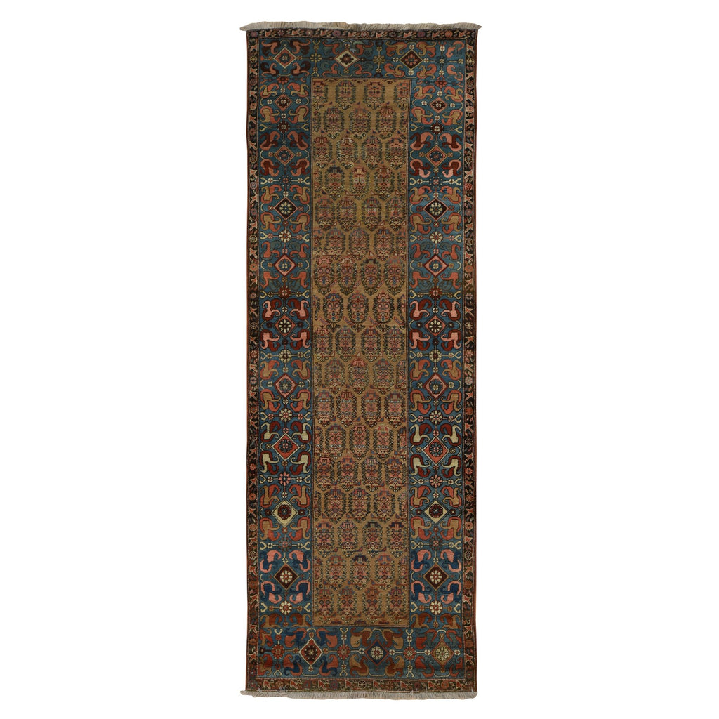 Condition: Used Weave Type: Hand Knotted Shape: Runner Size: 3’8″ x 11’2″ Main Color: Brown Border Color: Blue Other Colors: Pink, Red, Green, Ivory, Orange, Green, Black Top Material: Wool Base Material: Cotton Collection: Antique Rug Number: MOA10278185