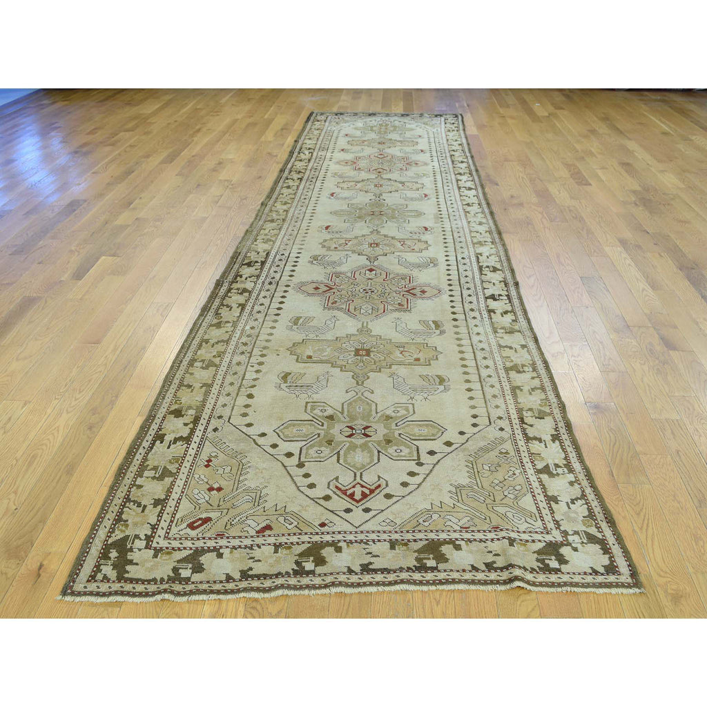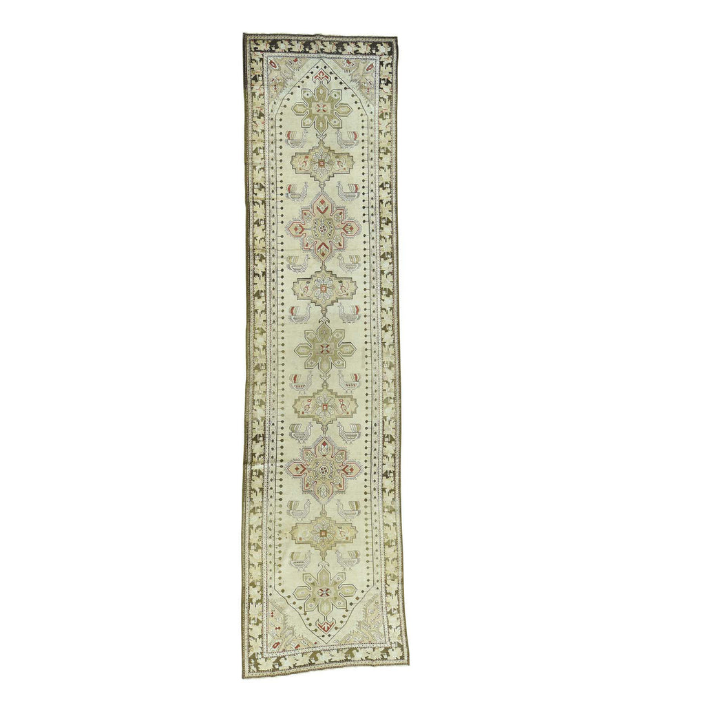 Condition: Used Weave Type: Hand Knotted Shape: Runner Size: 3’8″ x 15’0″ Main Color: Green Border Color: Olive Green Other Colors: Red, Ivory, Beige Top Material: Wool Base Material: Wool Collection: Antique Rug Number: MOA10233178