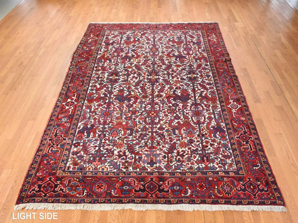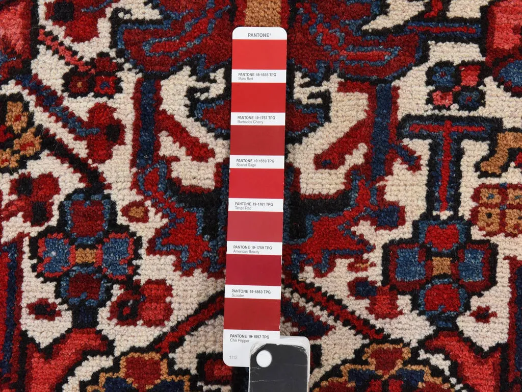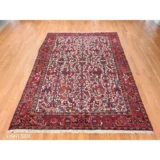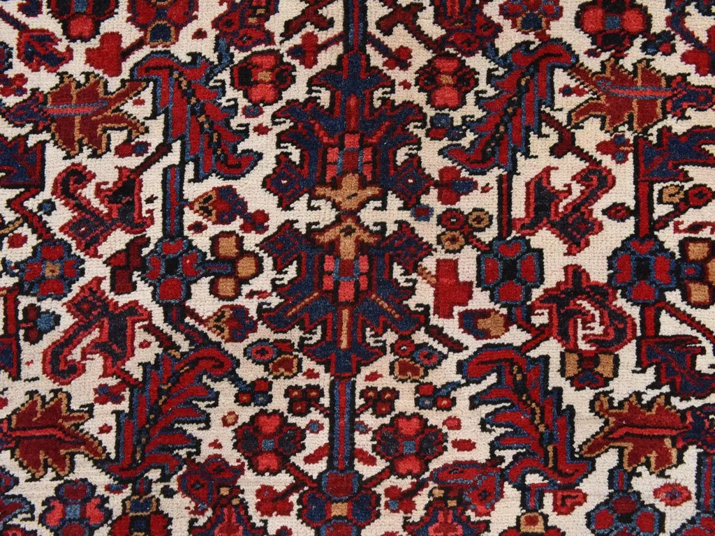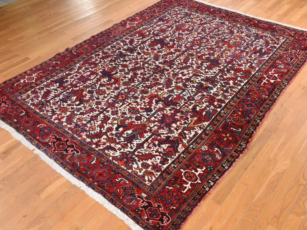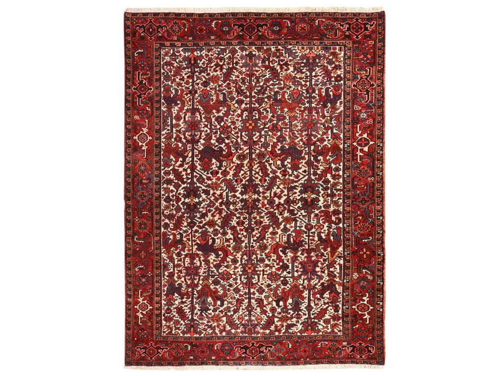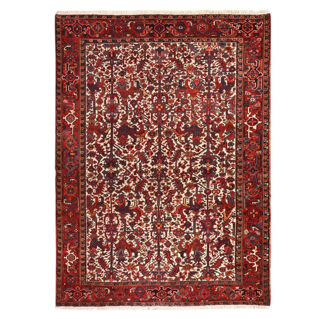 Condition: Used Weave Type: Hand Knotted Shape: Rectangle Size: 8’3″ x 11’1″ Main Color: Ivory Border Color: Red Other Colors: Charcoal Black, Navy Blue, Brown Top Material: Wool Base Material: Cotton Collection: Persian Rug Number: MOA10278433
