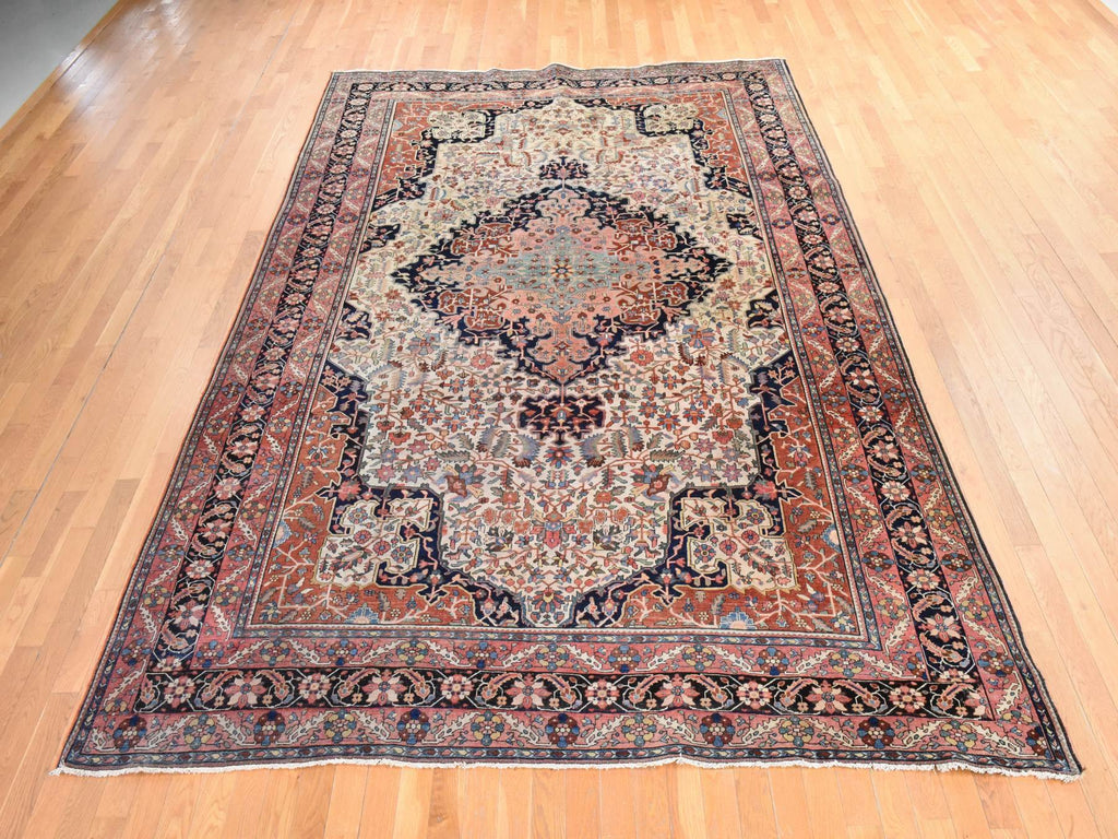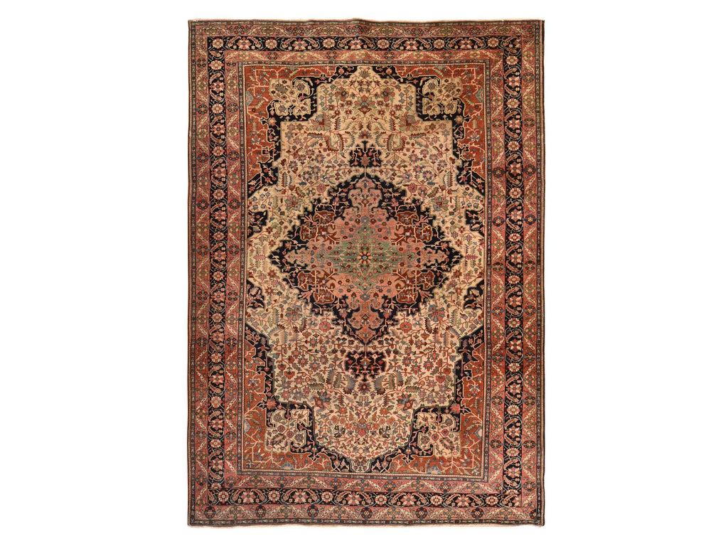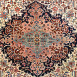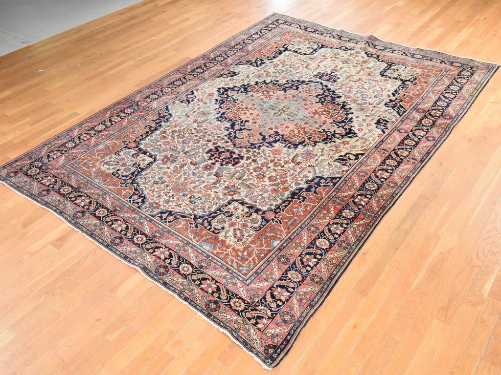 Condition: Used Weave Type: Hand Knotted Shape: Rectangle Size: 8’5″ x 11’4″ Main Color: Ivory Border Color: Midnight Blue Other Colors: Red, Light Blue, Pink, Beige, Green Top Material: Wool Base Material: Cotton Collection: Antique Rug Number: MOA10278476