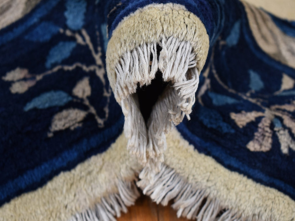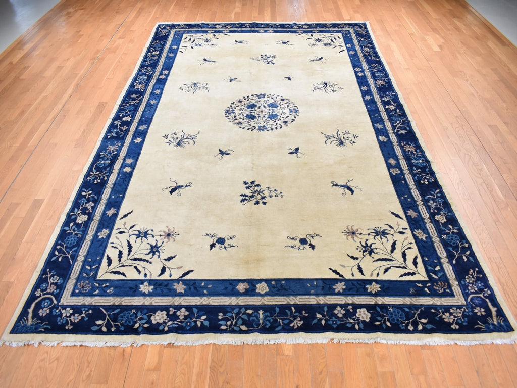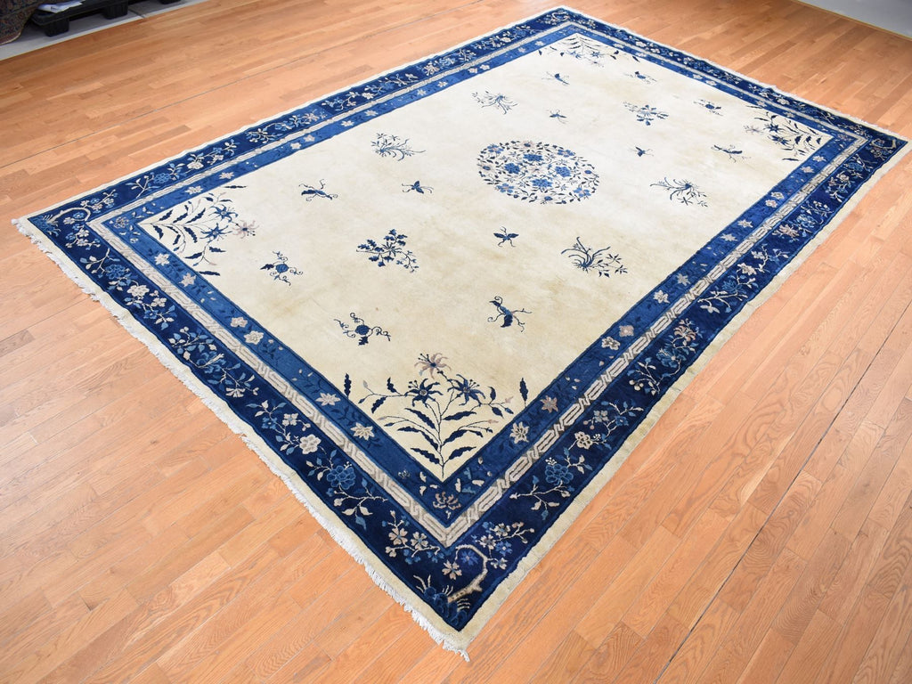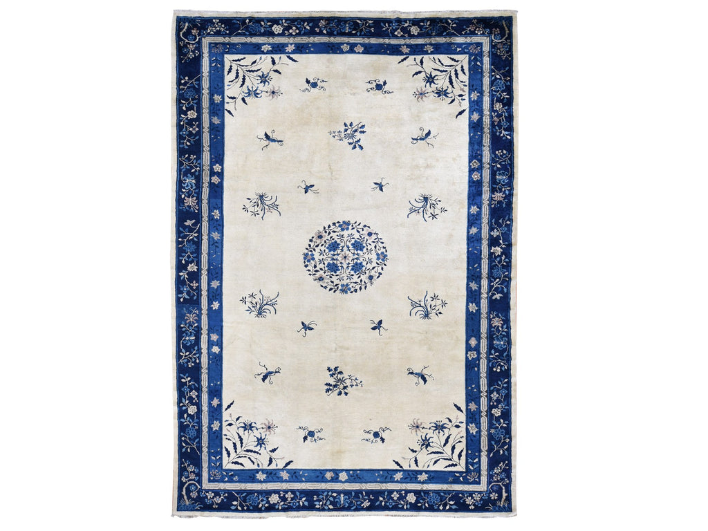 Condition: Used Weave Type: Hand Knotted Shape: Rectangle Size: 9’0″ x 14’2″ Main Color: Ivory Border Color: Blue Other Colors: Imperial Blue Top Material: Wool Base Material: Cotton Collection: Antique Rug Number: MOA10287402