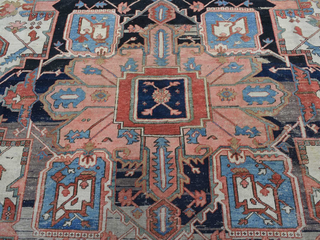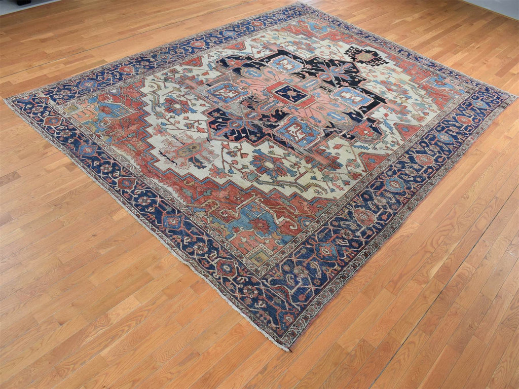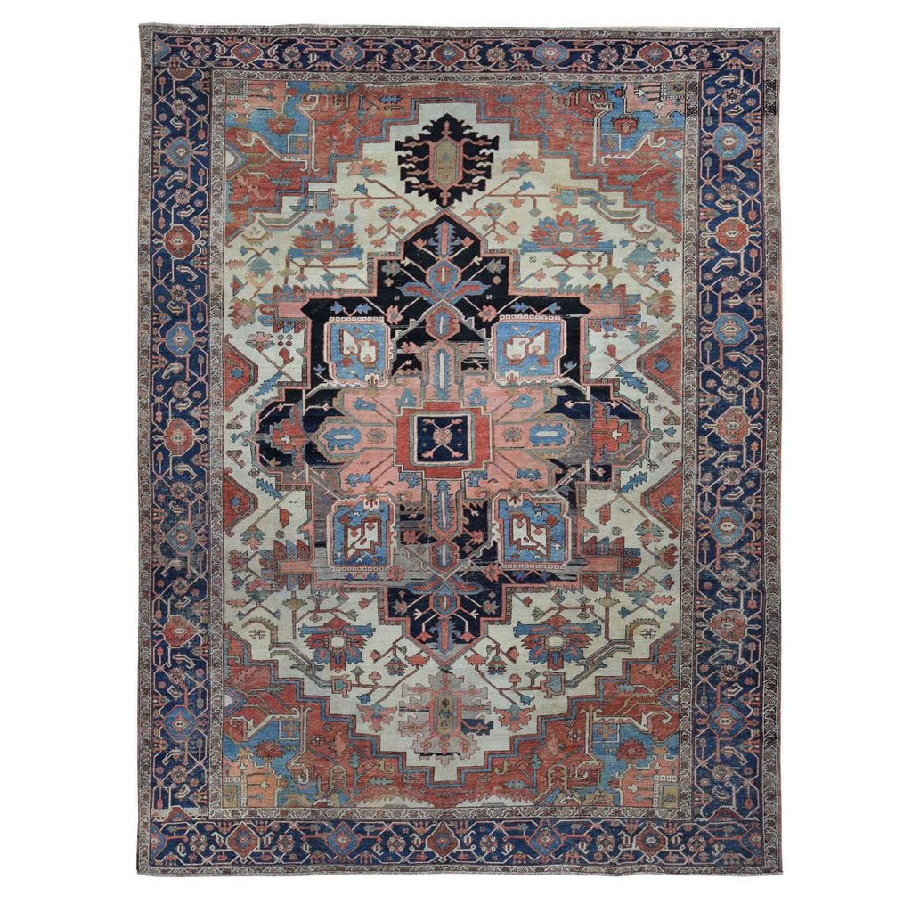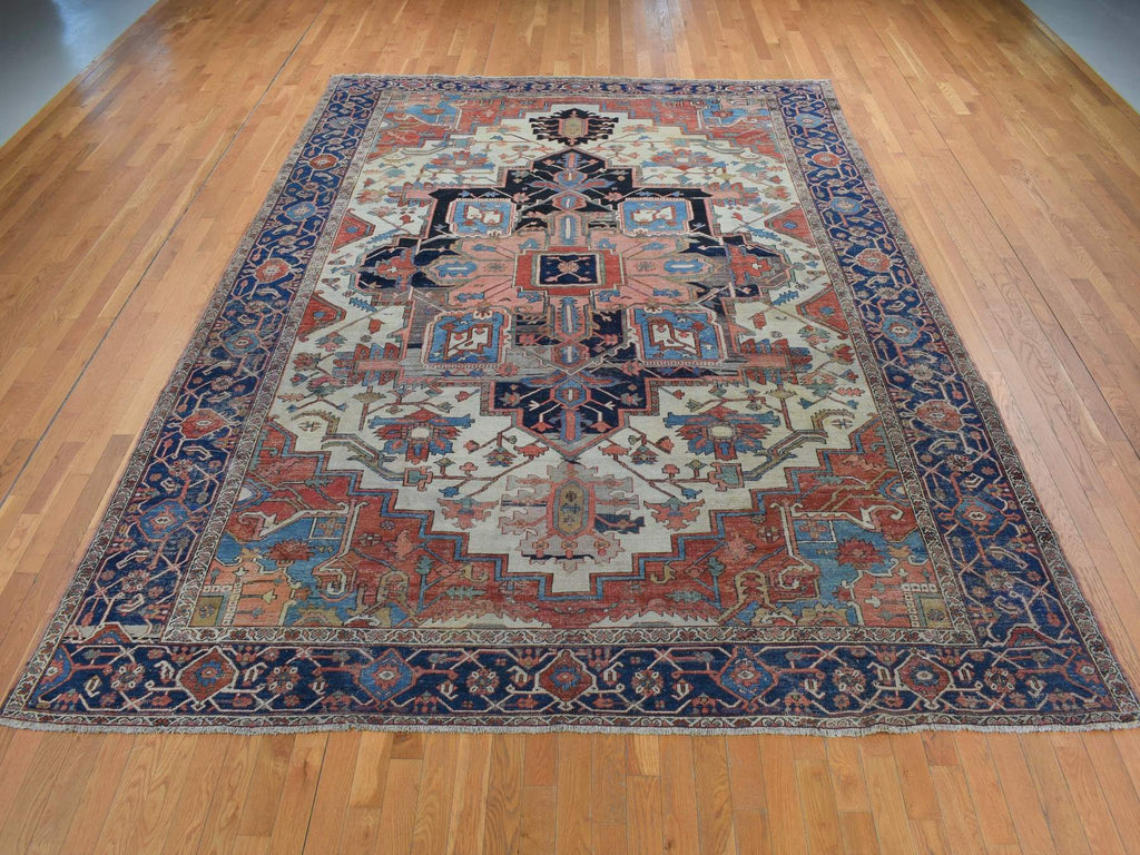 Condition: Used Weave Type: Hand Knotted Shape: Rectangle Size: 9’9″ x 12’6″ Main Color: Ivory Border Color: Blue Other Colors: Sand Brown, Black, Red, Green, Yankees Blue Top Material: Wool Base Material: Cotton Collection: Antique Rug Number: MOA10287424