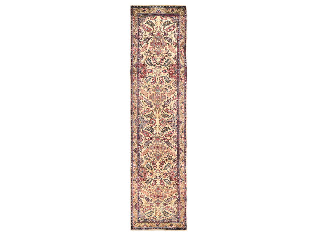 Condition: Used Weave Type: Hand Knotted Shape: Runner Size: 3’0″ x 12’0″ Main Color: Ivory Border Color: Ivory Other Colors: Red, Blue. Peach, Pink, Yellow Top Material: Wool Base Material: Cotton Collection: Antique Rug Number: MOA10278485