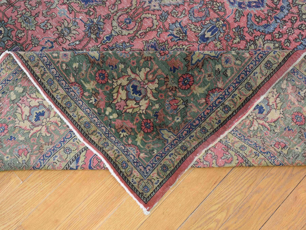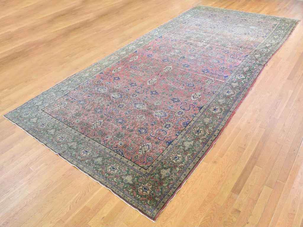 Condition: Used Weave Type: Hand Knotted Shape: Rectangle Size: 9’2″ x 19’2″ Main Color: Pink Border Color: Green Other Colors: Navy Blue, Yellow, Light Blue, Red, Salmon, Brown Top Material: Wool Base Material: Cotton Collection: Antique Rug Number: MOA10266995