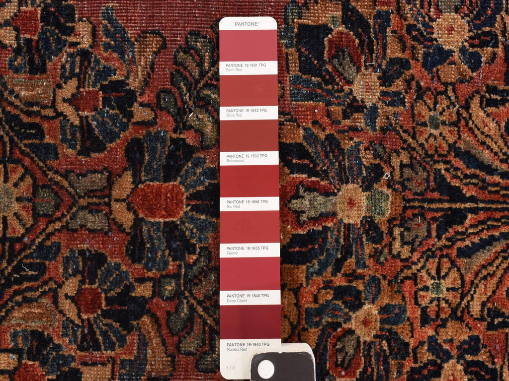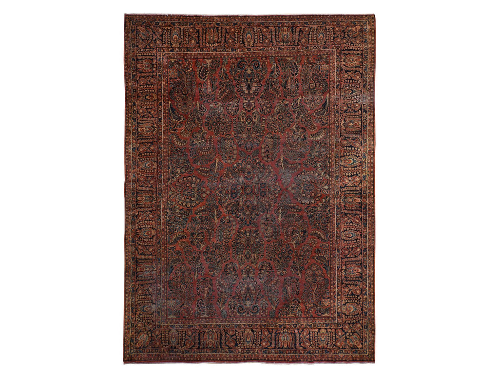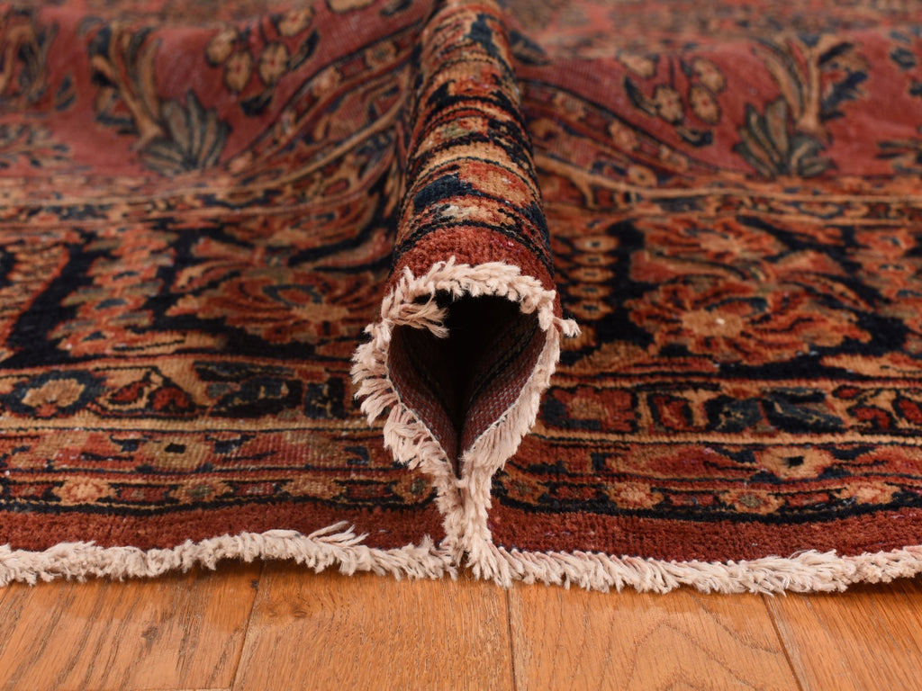 Condition: Used Weave Type: Hand Knotted Shape: Rectangle Size: 10’0″ x 13’4″ Main Color: Red Border Color: Midnight Blue Other Colors: Green, Ivory, Teal Blue, Brown Top Material: Wool Base Material: Cotton Collection: Antique Rug Number: MOA10278306