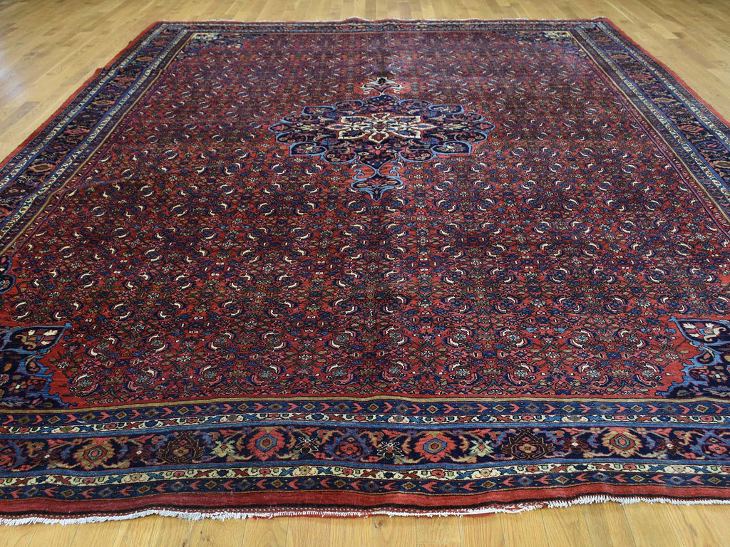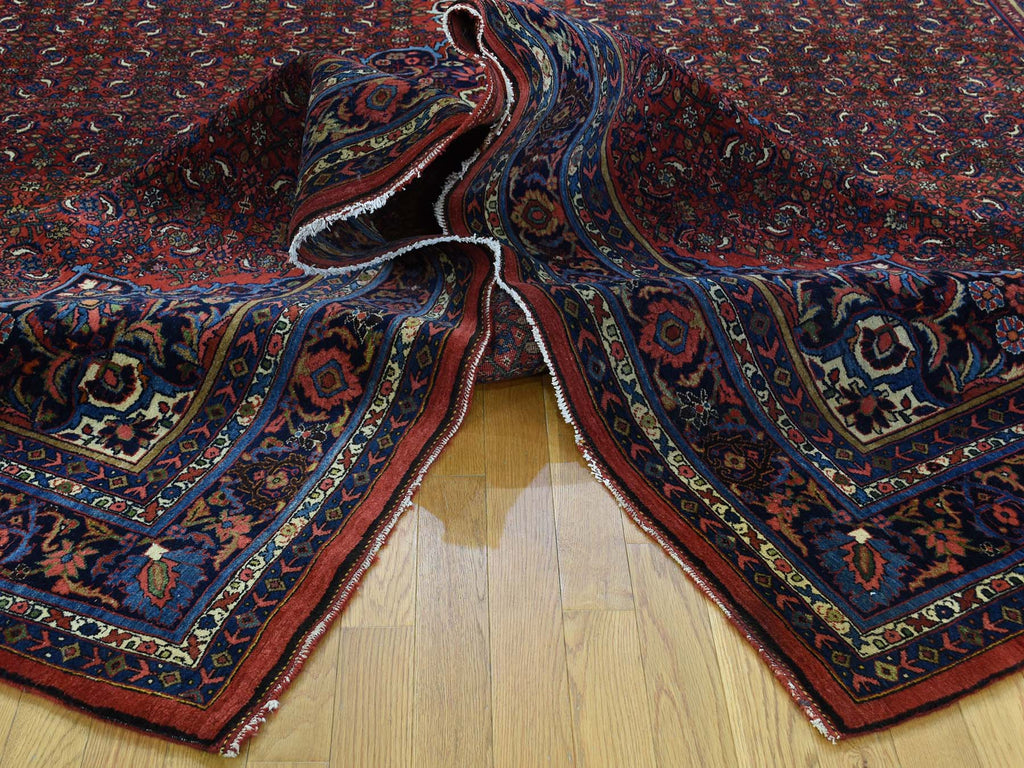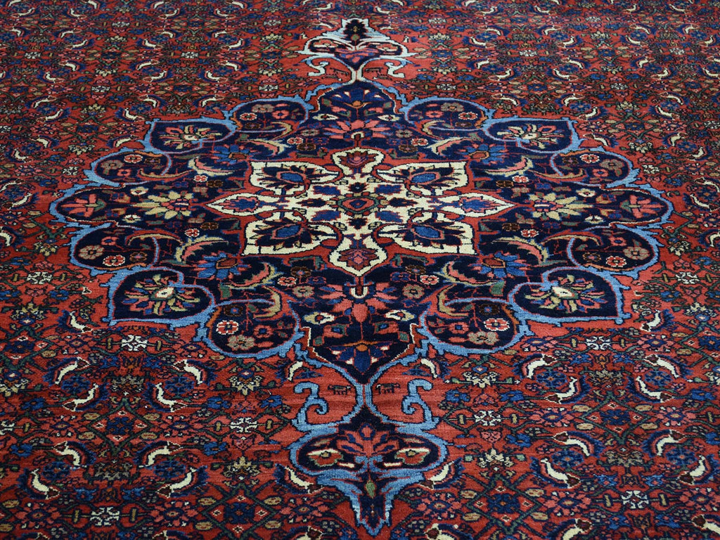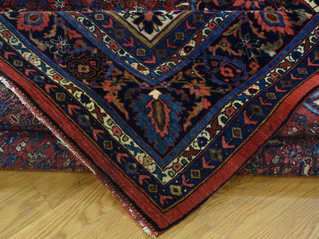 Condition: Used Weave Type: Hand Knotted Shape: Rectangle Size: 10’5″ x 13’9″ Main Color: Red Border Color: Navy Blue Other Colors: Pink, Denim Blue, Forest Green, Beige, Black, Dark Green, Dark Red Top Material: Wool Base Material: Cotton Collection: Antique Rug Number: MOA10232840