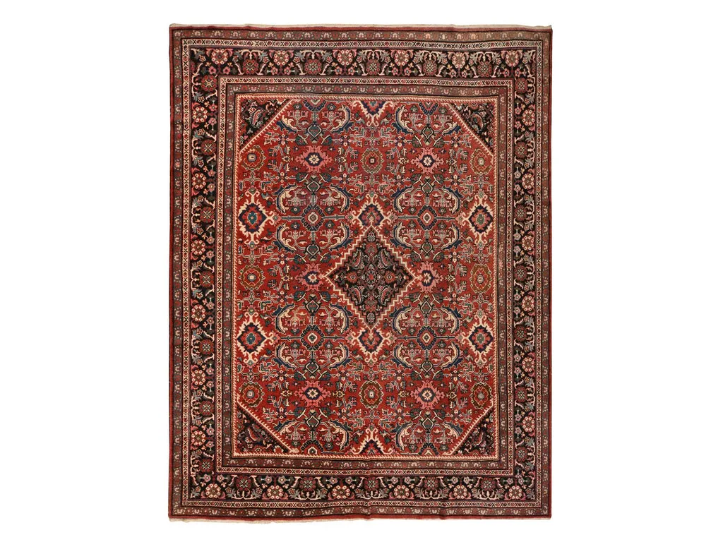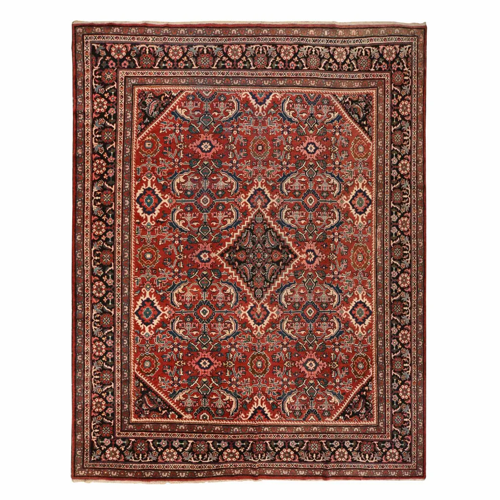Condition: Used Weave Type: Hand Knotted Shape: Rectangle Size: 10’7″ x 13’7″ Main Color: Red Border Color: Chocolate Brown Other Colors: Ivory, Green, Pink, Light Blue, Navy Blue Top Material: Wool Base Material: Cotton Collection: Persian Rug Number: MOA10278416