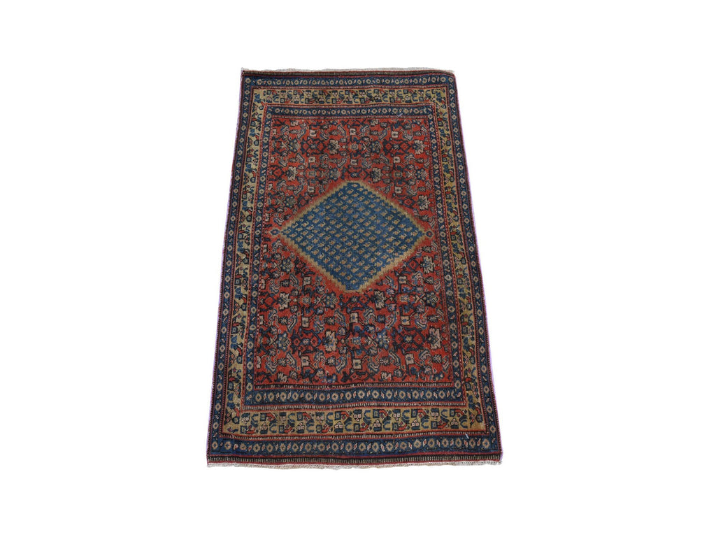 Condition: Used Weave Type: Hand Knotted Shape: Rectangle Size: 1’10” x 3’2″ Main Color: Red Border Color: Brown Other Colors: Navy Blue, Beige Top Material: Wool Base Material: Cotton Collection: Antique Rug Number: MOA10278407