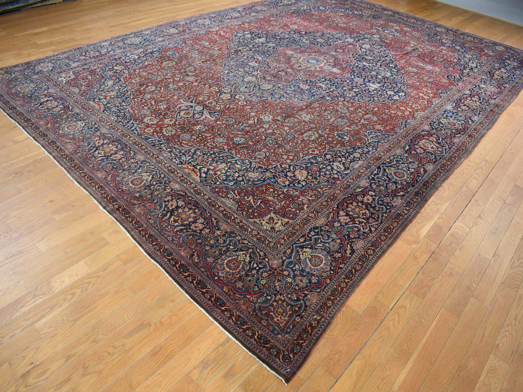 Condition: Used Weave Type: Hand Knotted Shape: Rectangle Size: 11’2″ x 16’8″ Main Color: Red Border Color: Visa Blue Other Colors: Flint, Gray Goose, Hibiscus, Snow White, Seashell Top Material: Wool Base Material: Cotton Collection: Antique Rug Number: MOA10280779