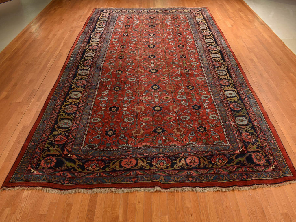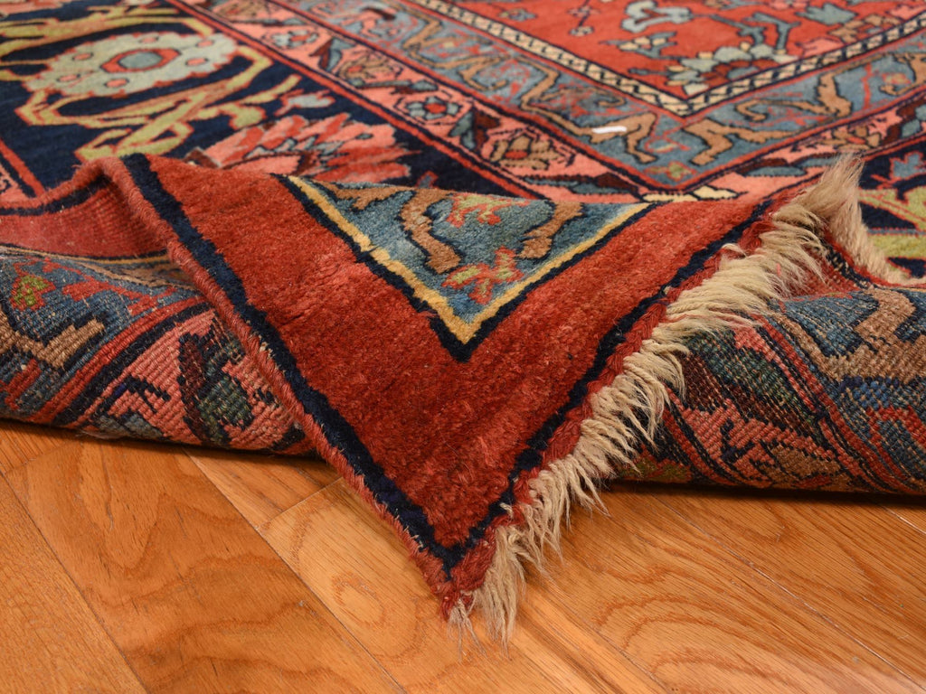 Condition: Used Weave Type: Hand Knotted Shape: Rectangle Size: 11’2″ x 18’5″ Main Color: Red Border Color: Navy Blue Other Colors: Brown, Pink, Green, Light Blue, Yellow Top Material: Wool Base Material: Wool Collection: Antique Rug Number: MOA10278275