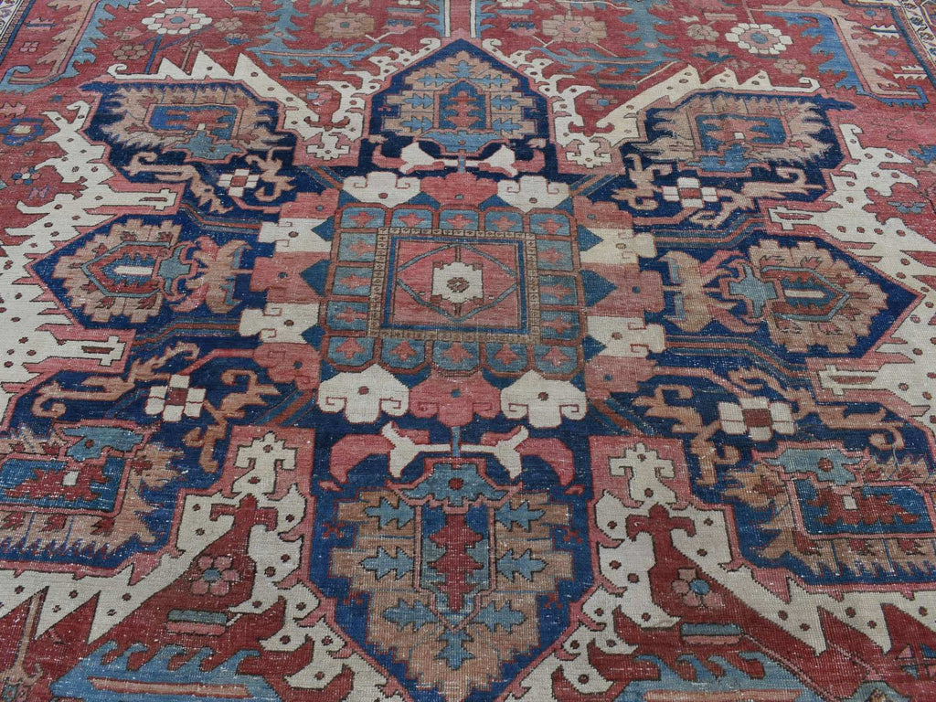 Condition: Used Weave Type: Hand Knotted Shape: Rectangle Size: 12’3″ x 18’6″ Main Color: Red Border Color: Red Other Colors: Navy Blue, Ivory, Light Blue, Pink Top Material: Wool Base Material: Cotton Collection: Antique Rug Number: MOA10280698