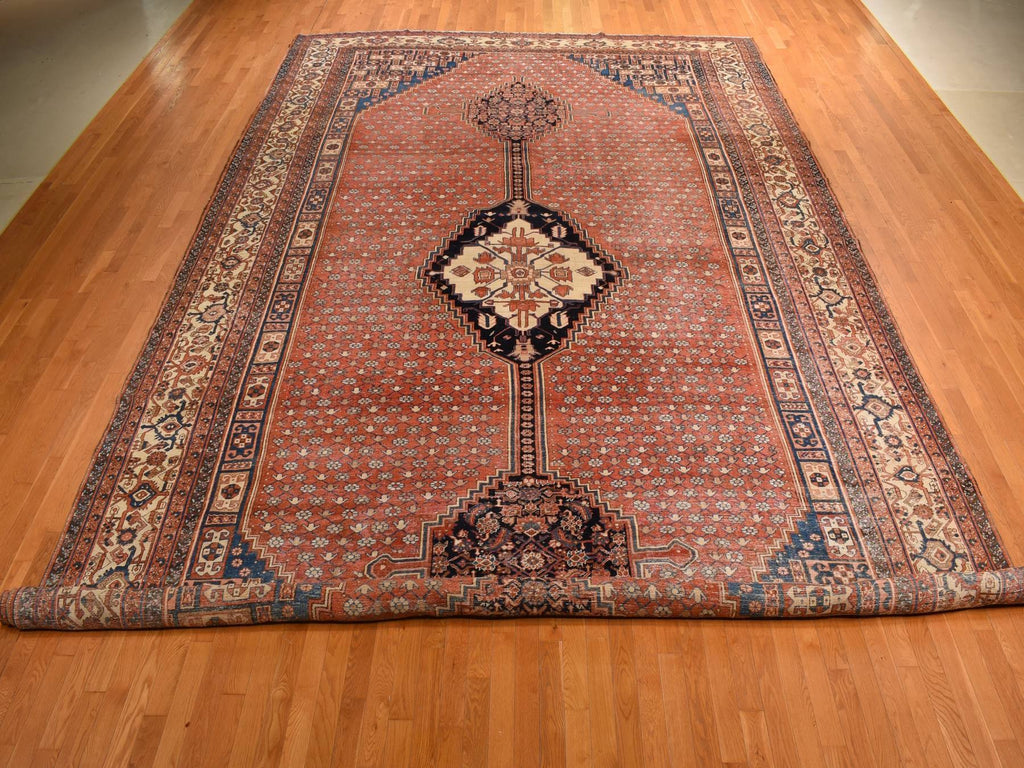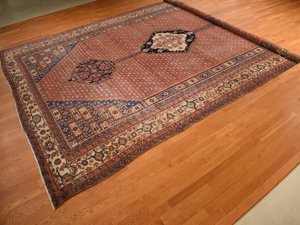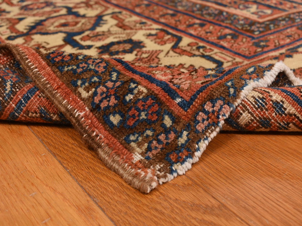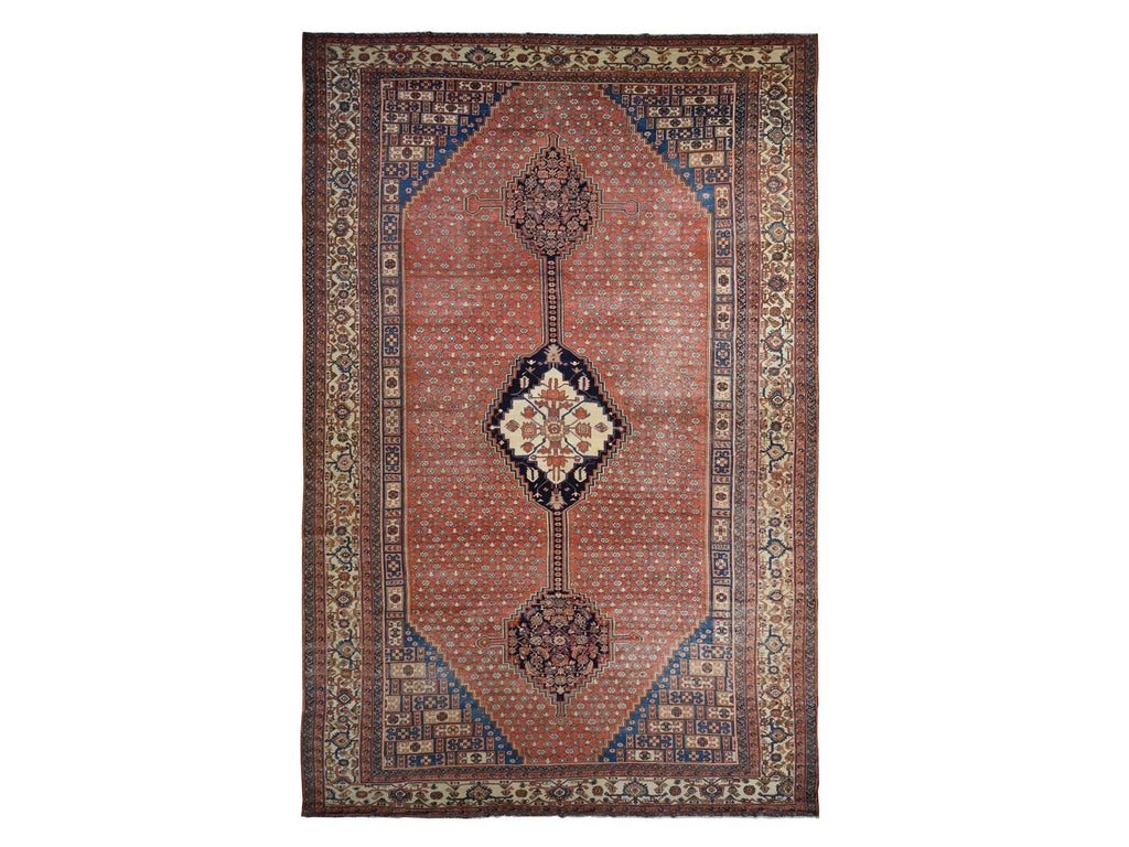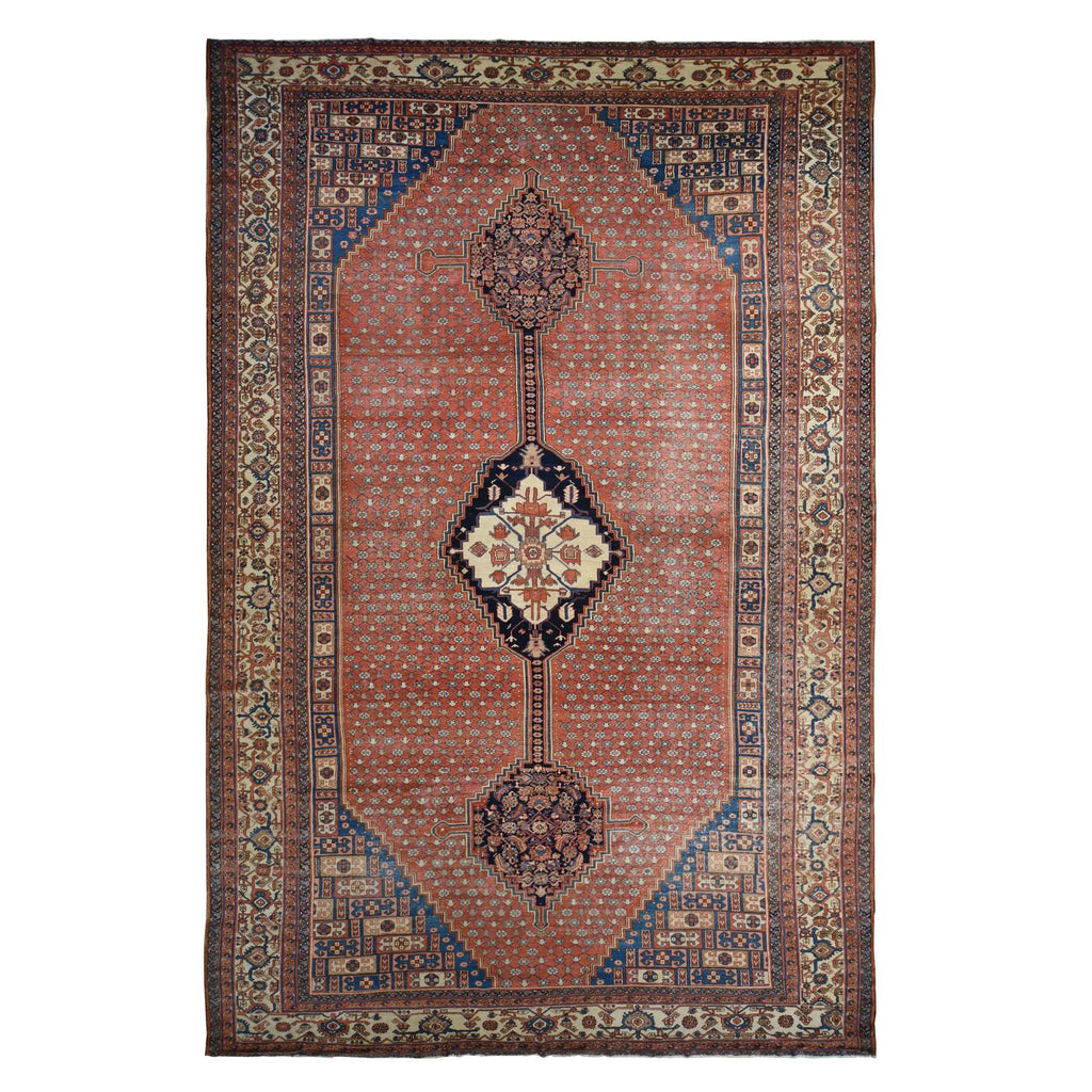 Condition: Used Weave Type: Hand Knotted Shape: Rectangle Size: 12’6″ x 19’6″ Main Color: Red Border Color: Ivory Other Colors: Brown, Midnight Blue, Denim Blue, Brown, Orange, Beige Top Material: Wool Base Material: Cotton Collection: Antique Rug Number: MOA10278276