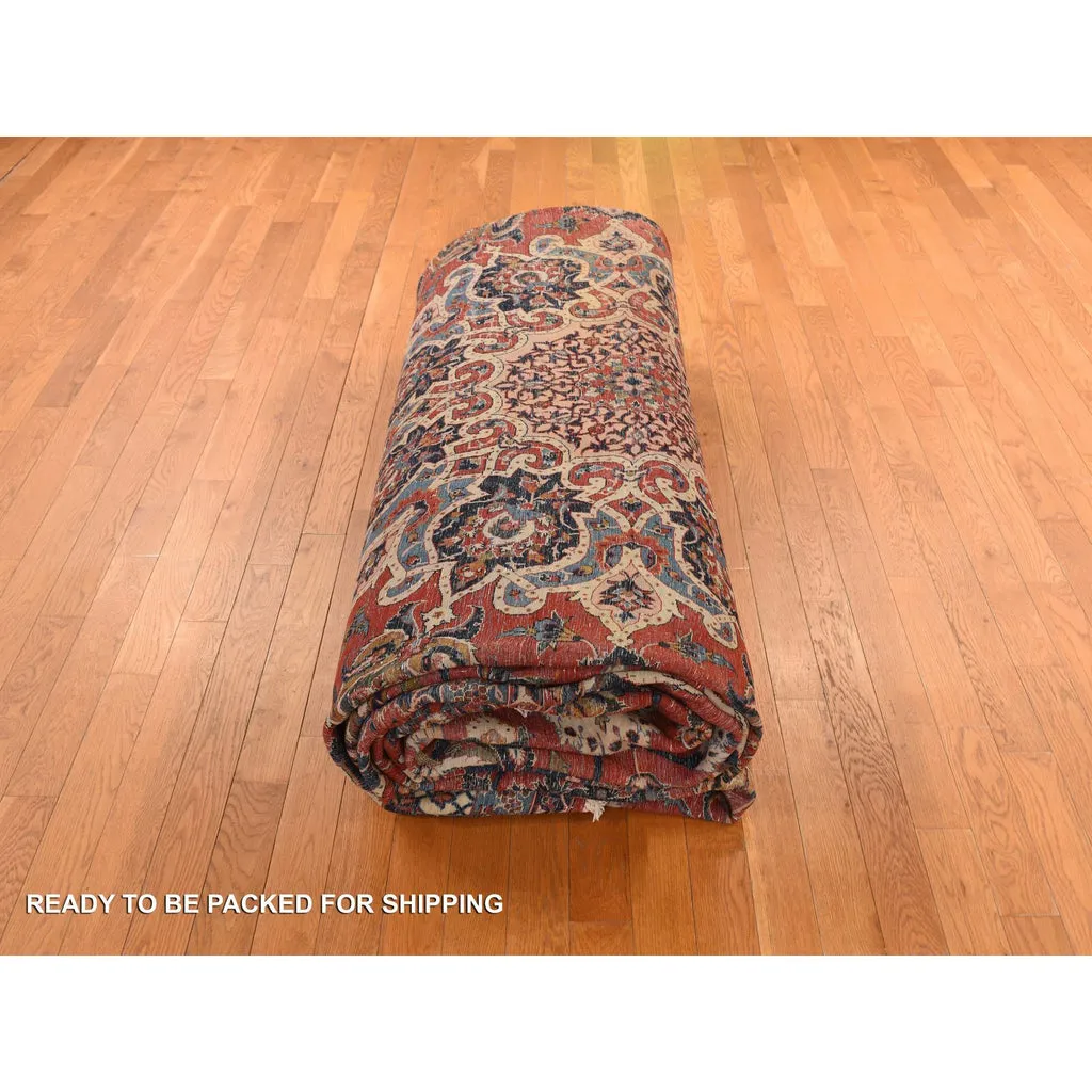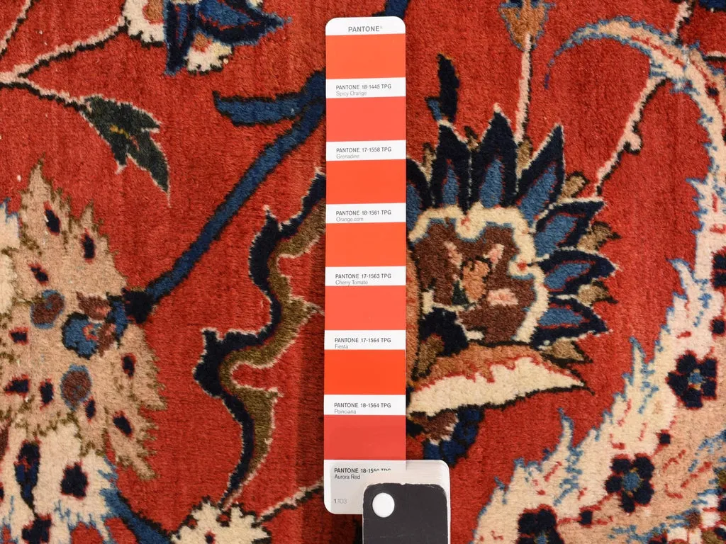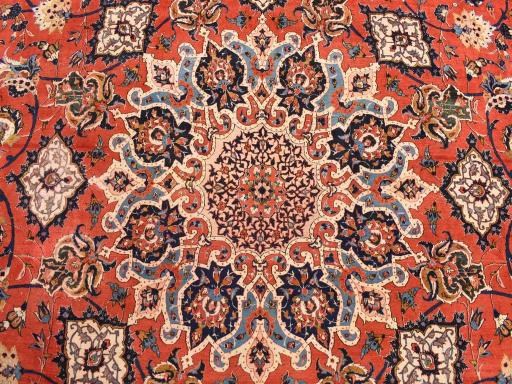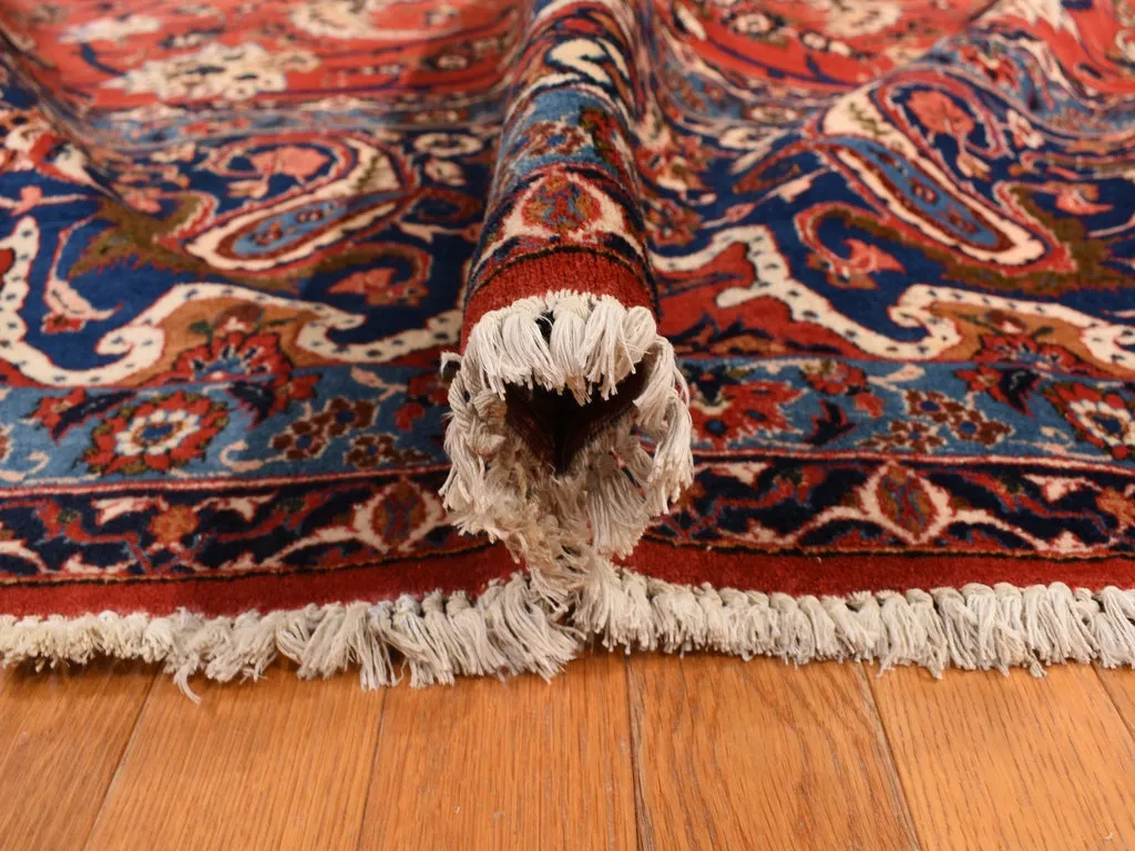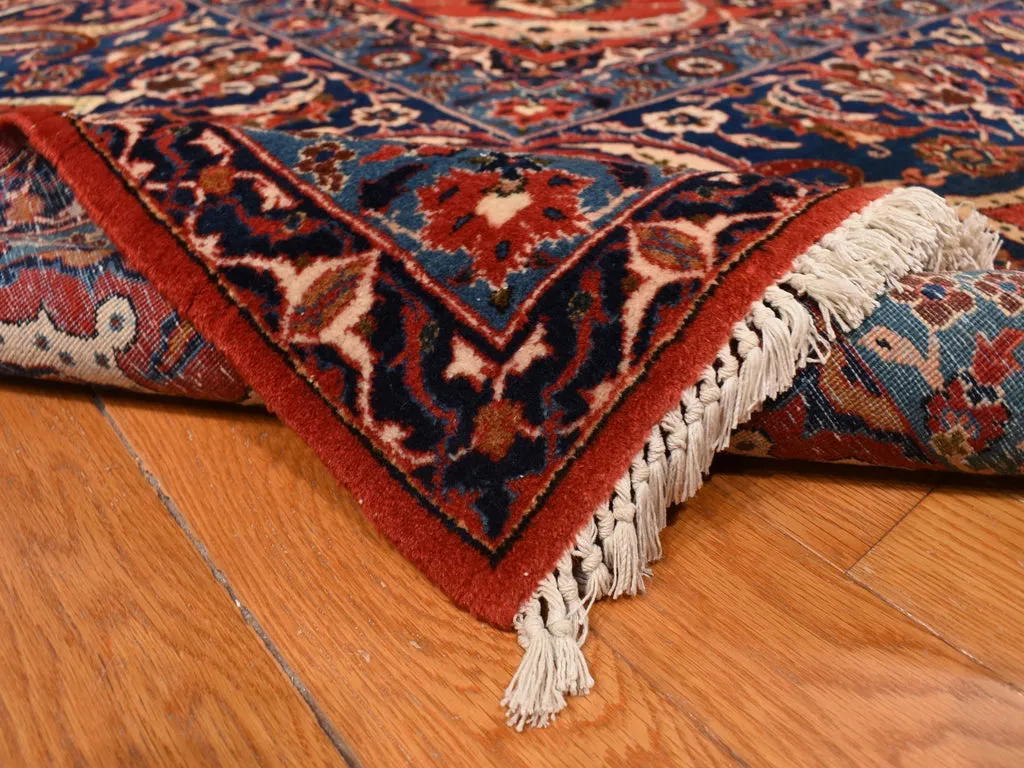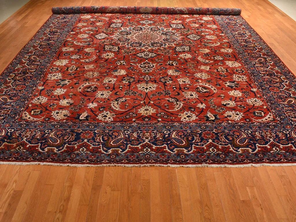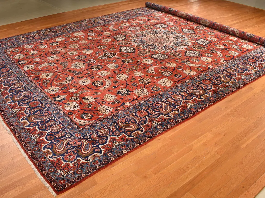 Condition: Used Weave Type: Hand Knotted Shape: Rectangle Size: 13’10” x 21’10” Main Color: Red Border Color: Red Other Colors: Brown, Light Blue, Navy Blue, Ivory, Green Top Material: Wool Base Material: Cotton Collection: Persian Rug Number: MOA10278270