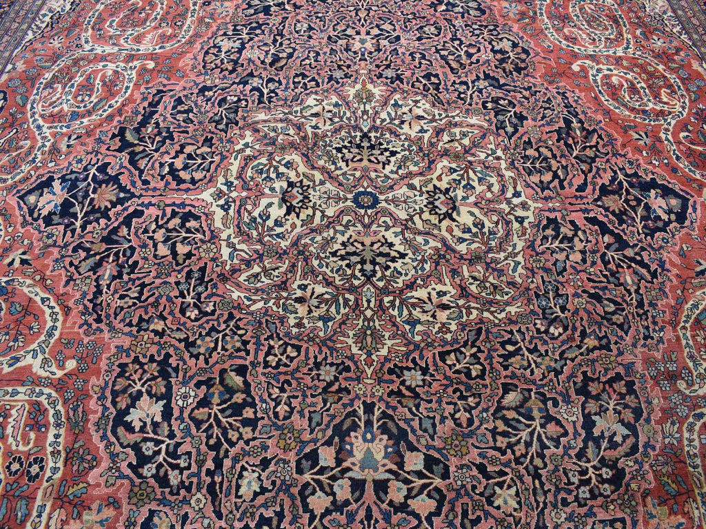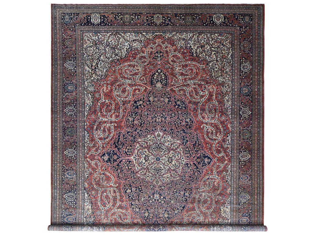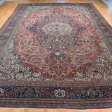 Condition: Used Weave Type: Hand Knotted Shape: Rectangle Size: 14’3″ x 20’3″ Main Color: Red Border Color: Midnight Blue Other Colors: Ivory, Green, Brown, Ivory Top Material: Wool Base Material: Cotton Collection: Antique Rug Number: MOA10280699