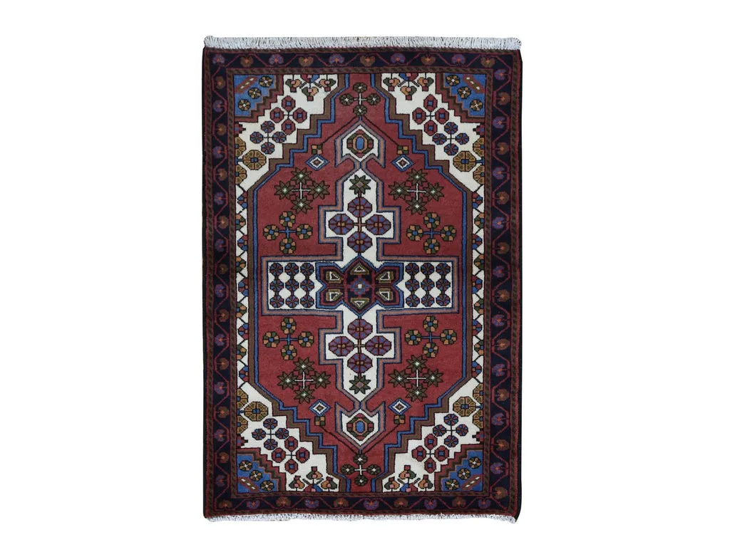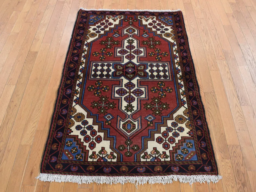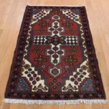 Condition: Used Weave Type: Hand Knotted Shape: Rectangle Size: 3’5″ x 5’0″ Main Color: Red Border Color: Midnight Blue Other Colors: Green, Black, Pink, Orange, Blue Top Material: Wool Base Material: Cotton Collection: Persian Rug Number: MOA10287464