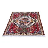 Condition: Used Weave Type: Hand Knotted Shape: Rectangle Size: 3’7″ x 5’0″ Main Color: Red Border Color: Ivory Other Colors: Orange, Green, Charocal Black, Yellow, Light Blue, Rose Top Material: Wool Base Material: Cotton Collection: Persian Rug Number: MOA10266628