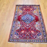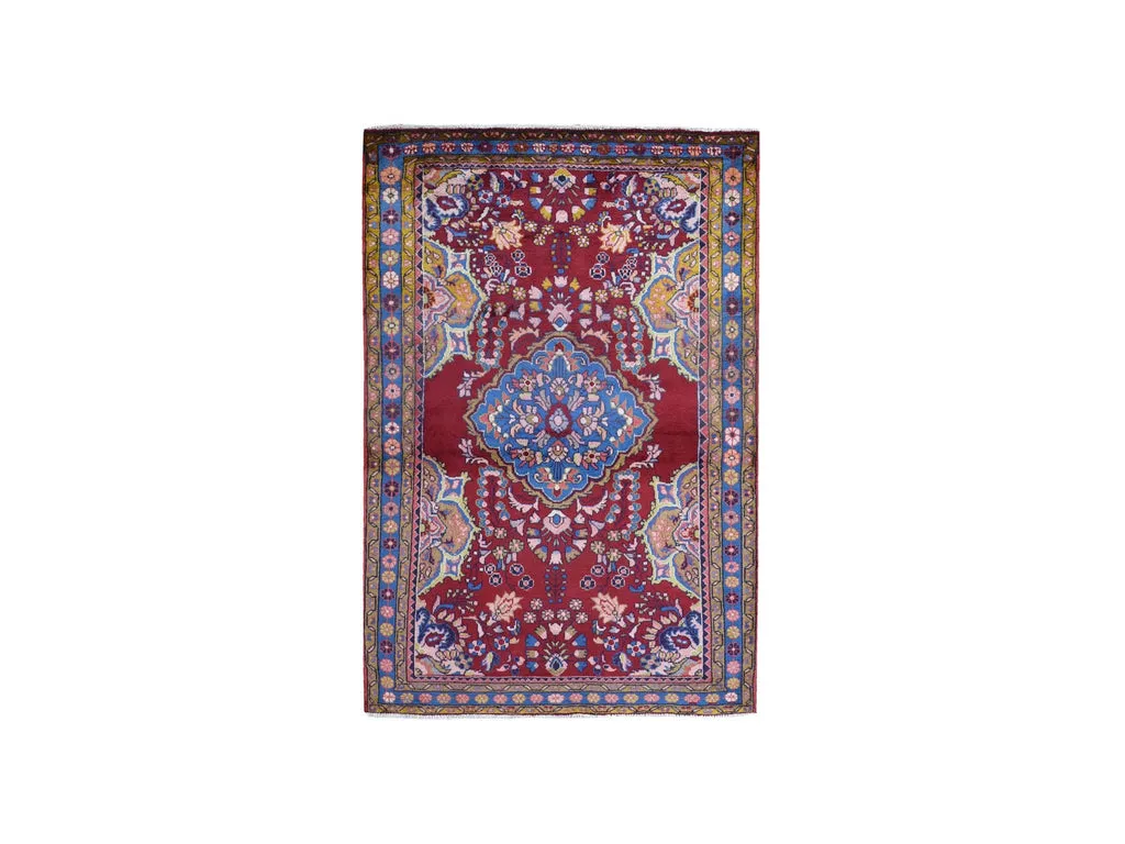 Condition: Used Weave Type: Hand Knotted Shape: Rectangle Size: 3’8″ x 5’10” Main Color: Red Border Color: Denim Blue Other Colors: Yellow, Ivory, Charcoal Black, Red Clay, Navy Blue, Beige Top Material: Wool Base Material: Cotton Collection: Persian Rug Number: MOA10259680