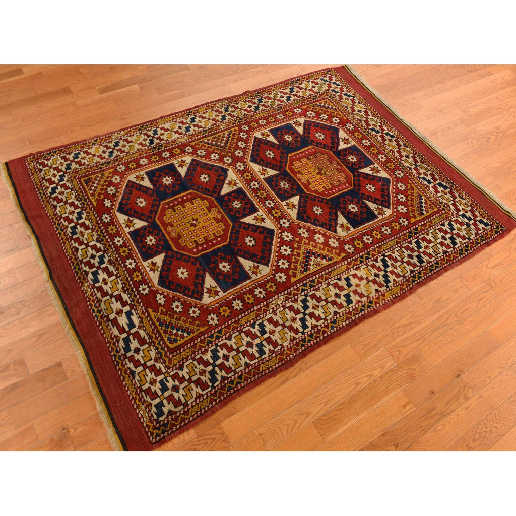 Condition: Used Weave Type: Hand Knotted Shape: Rectangle Size: 5’4″ x 7’0″ Main Color: Red Border Color: Moccasin Yellow Other Colors: Mikado Yellow, Blue Top Material: Wool Base Material: Wool Collection: Antique Rug Number: MOA10278233
