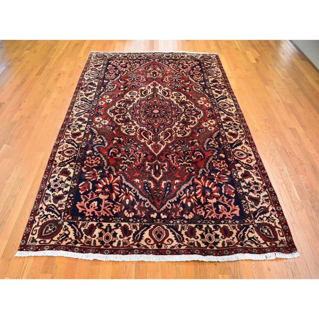 Condition: Used Weave Type: Hand Knotted Shape: Rectangle Size: 7’0″ x 10’4″ Main Color: Red Border Color: Ivory Other Colors: Pink, Navy Blue, Cream, Dark Brown, Dark Red Top Material: Wool Base Material: Cotton Collection: Persian Rug Number: MOA10259868