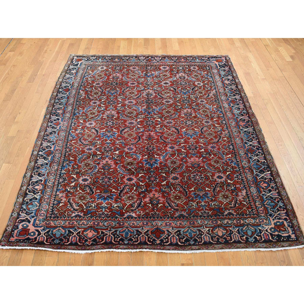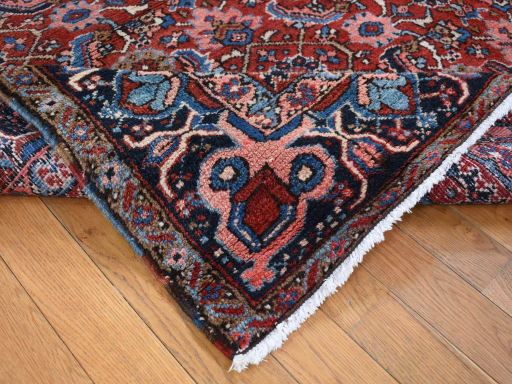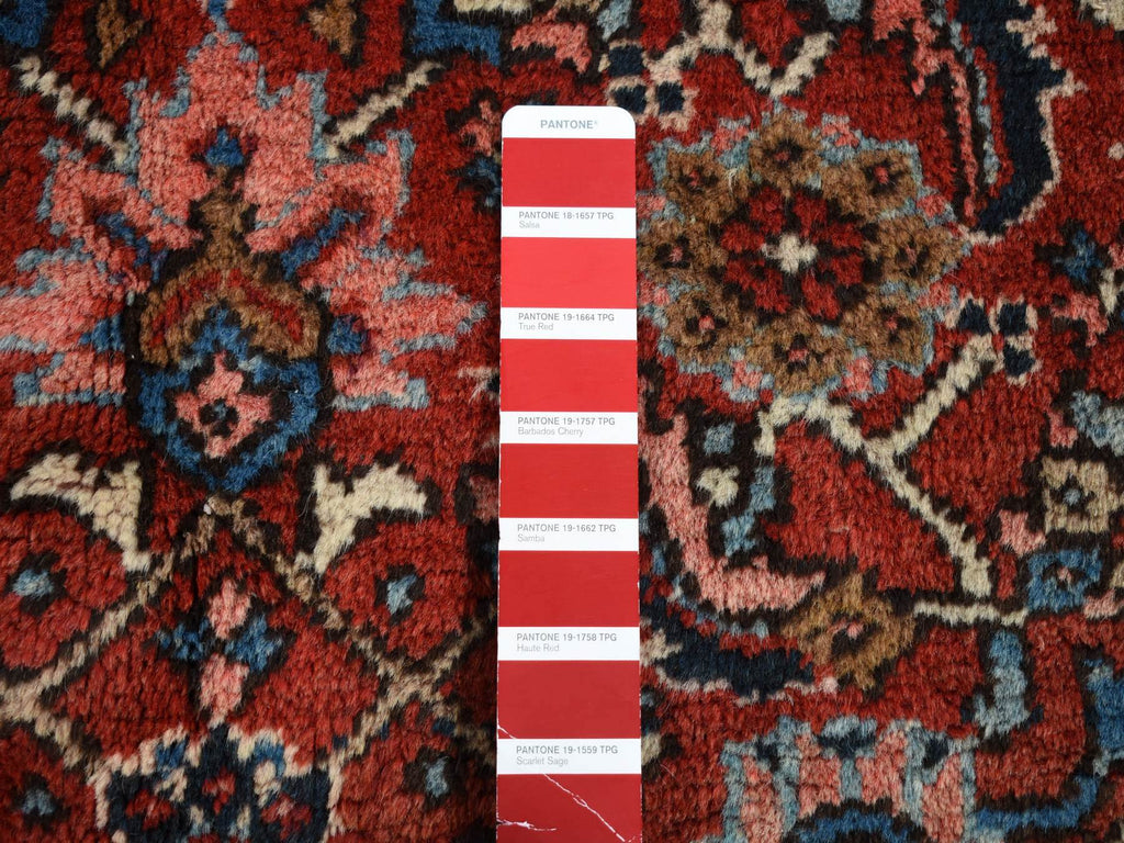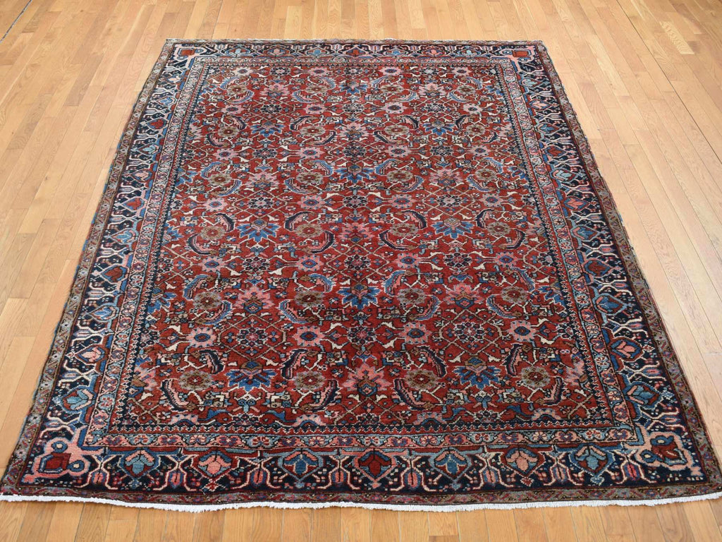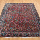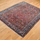 Condition: Used Weave Type: Hand Knotted Shape: Rectangle Size: 7’3″ x 9’7″ Main Color: Red Border Color: Blue Other Colors: Ivory, Black, Chocolate Brown, Light Blue Top Material: Wool Base Material: Cotton Collection: Antique Rug Number: MOA10287401
