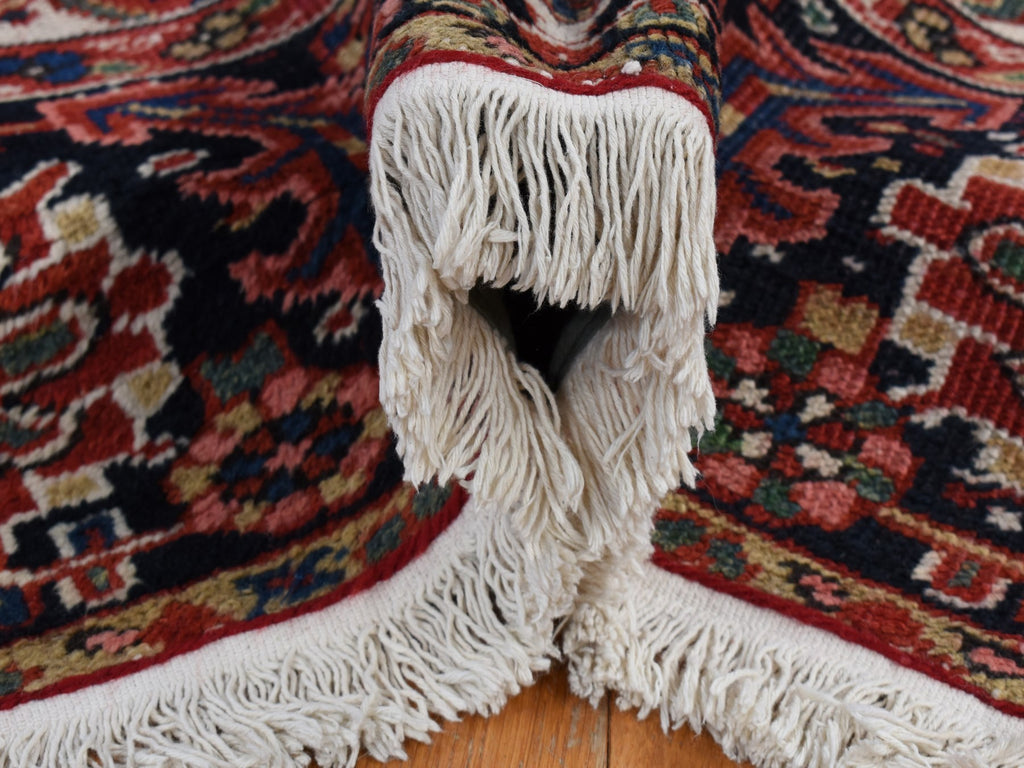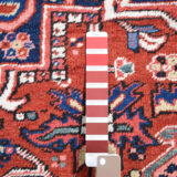 Condition: Used Weave Type: Hand Knotted Shape: Rectangle Size: 8’10” x 11’8″ Main Color: Red Border Color: Umber Brown Other Colors: Pearl White, Bone, Deep Coffee, Denim Blue, Little Boy Blue, Green, Rose Top Material: Wool Base Material: Cotton Collection: Antique Rug Number: MOA10280776