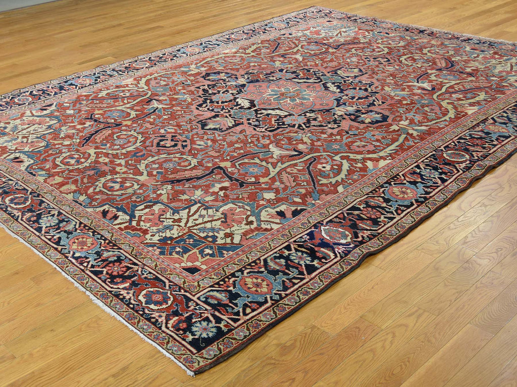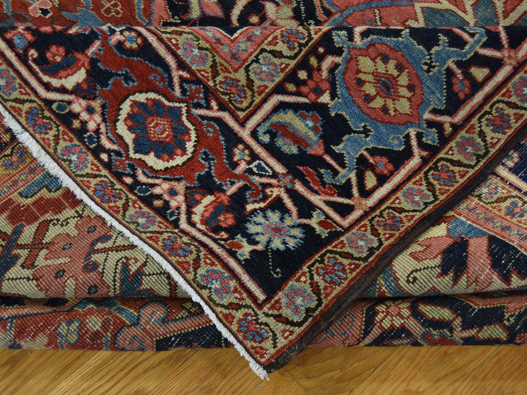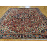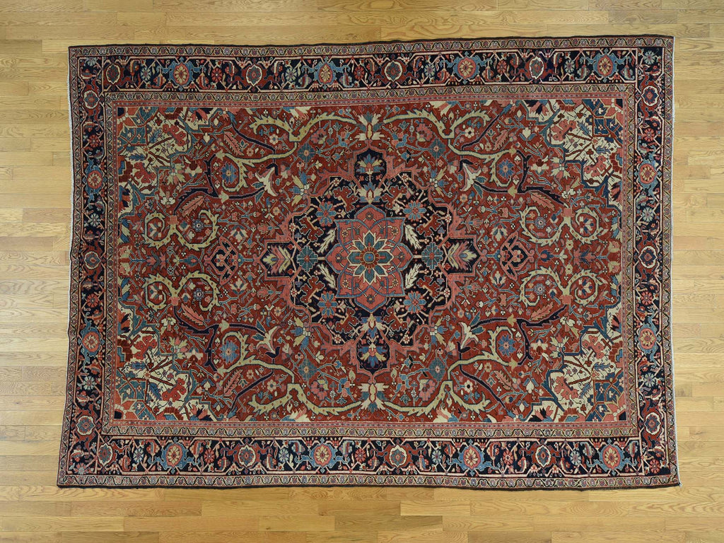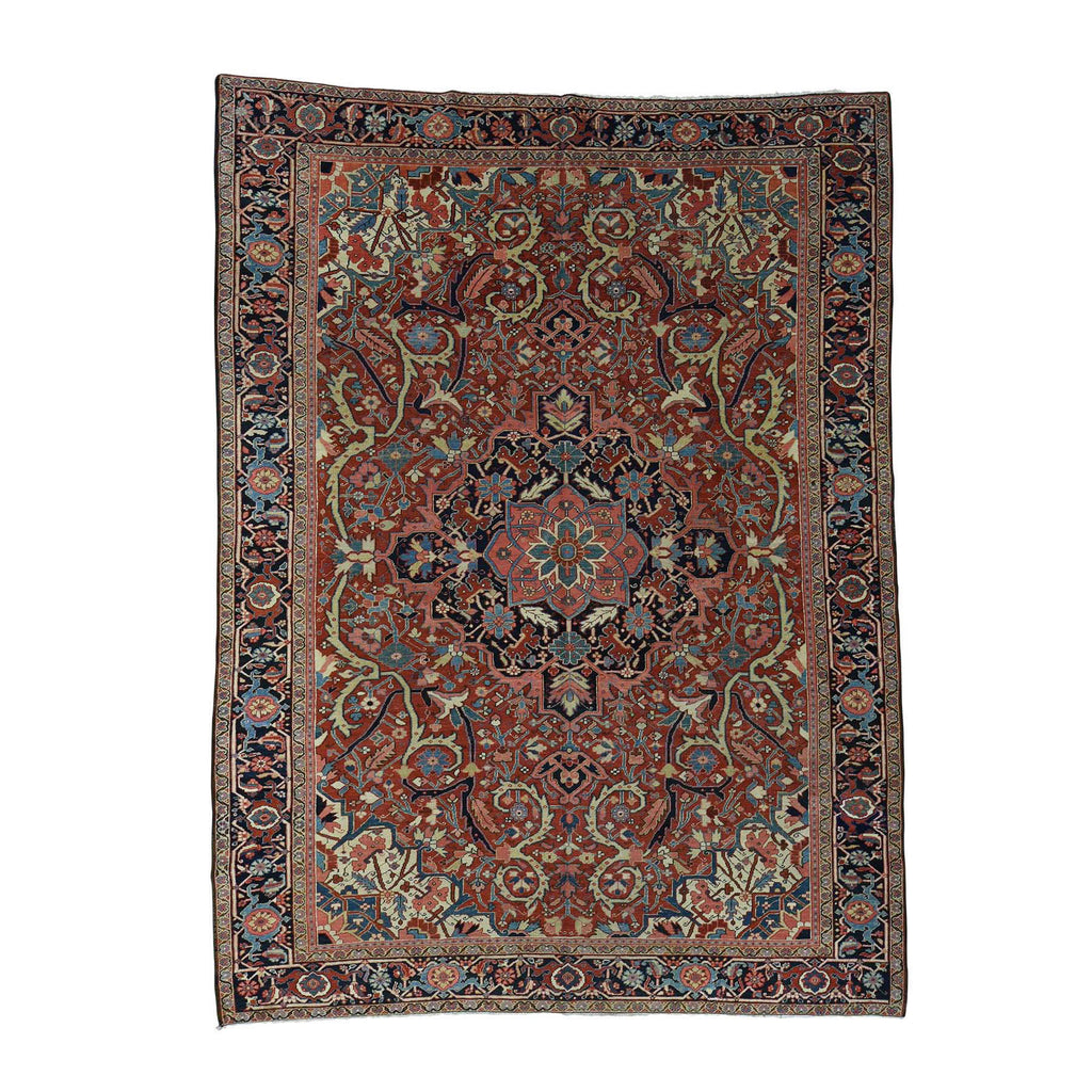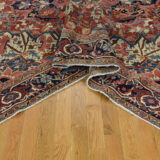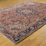 Condition: Used Weave Type: Hand Knotted Shape: Rectangle Size: 8’6″ x 11’7″ Main Color: Red Border Color: Navy Blue Other Colors: Rust Pink, Yellow, Denim Blue, Burgundy, Teal, Brown Top Material: Wool Base Material: Cotton Collection: Antique Rug Number: MOA10237427