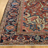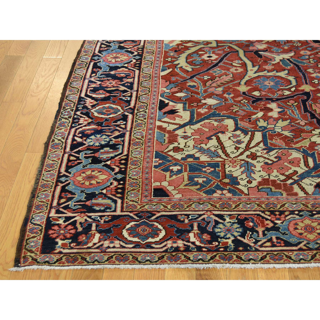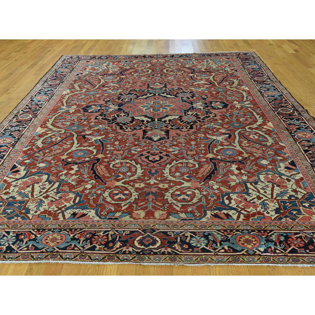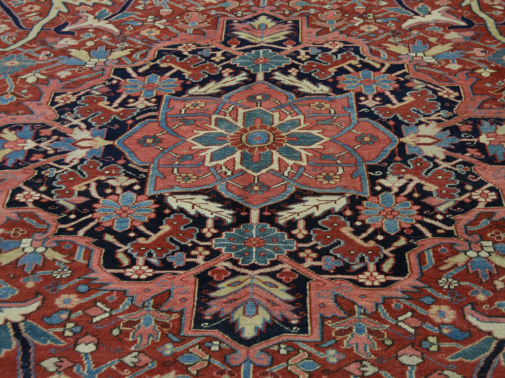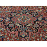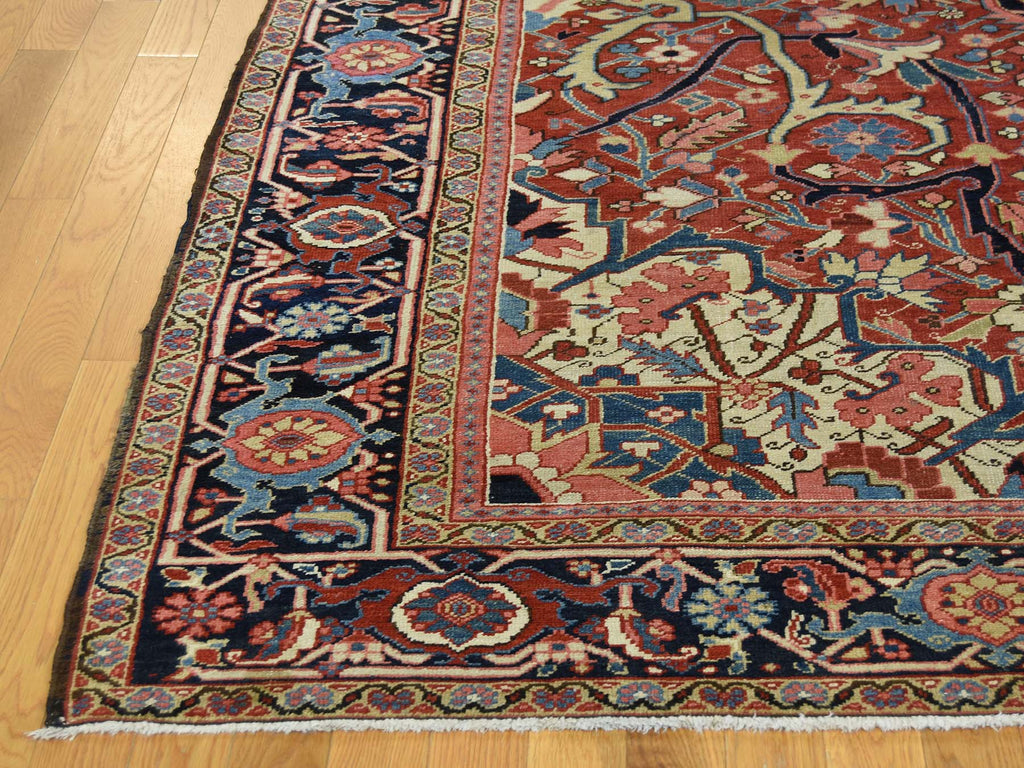 Condition: Used Weave Type: Hand Knotted Shape: Rectangle Size: 8’6″ x 11’7″ Main Color: Red Border Color: Navy Blue Other Colors: Rust Pink, Yellow, Denim Blue, Burgundy, Teal, Brown Top Material: Wool Base Material: Cotton Collection: Antique Rug Number: MOA10237427