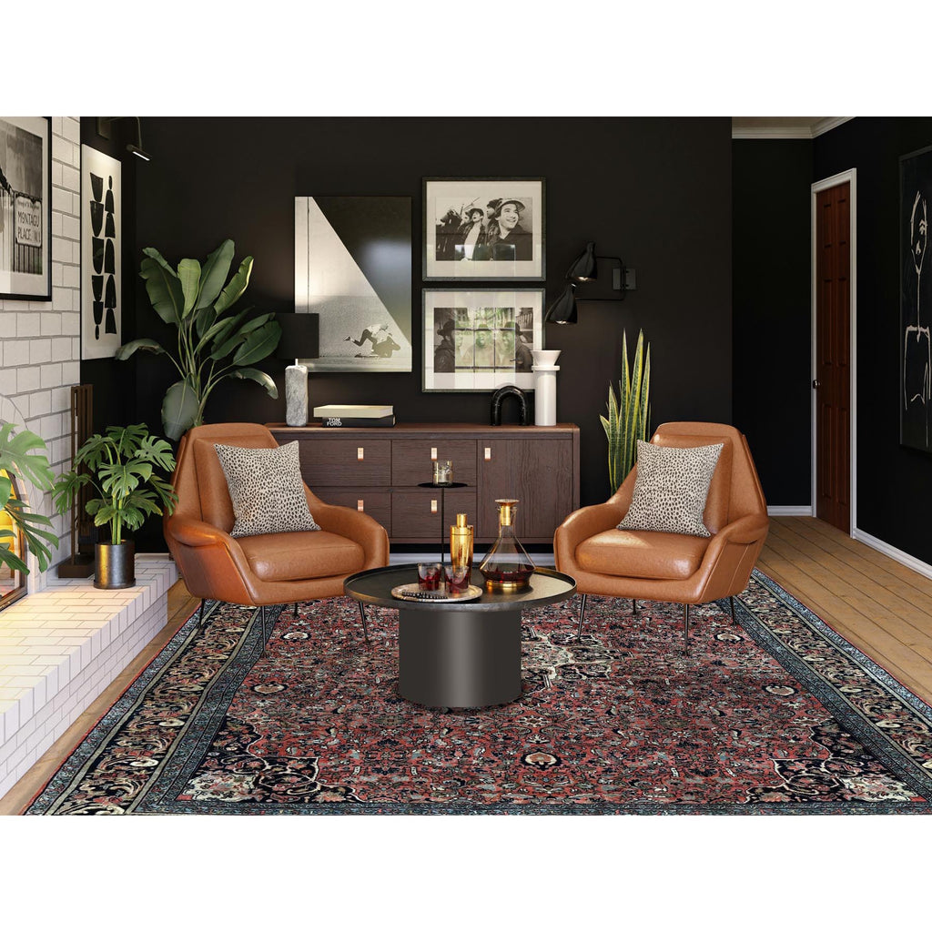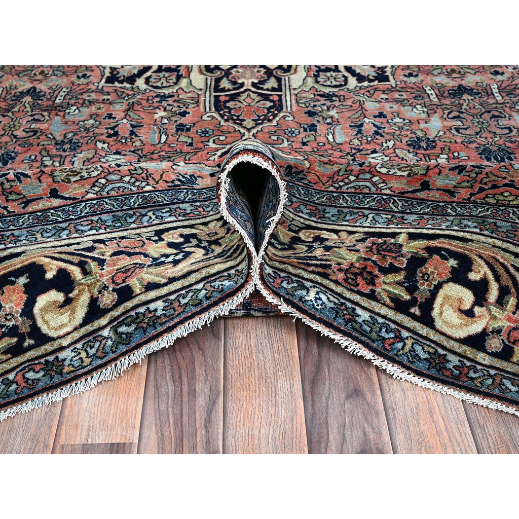 Condition: Used Weave Type: Hand Knotted Shape: Rectangle Size: 8’7″ x 11’10” Main Color: Red Border Color: Midnight Blue Other Colors: Green, Light Blue, Ivory, Brown Top Material: Wool Base Material: Cotton Collection: Antique Rug Number: MOA1021372