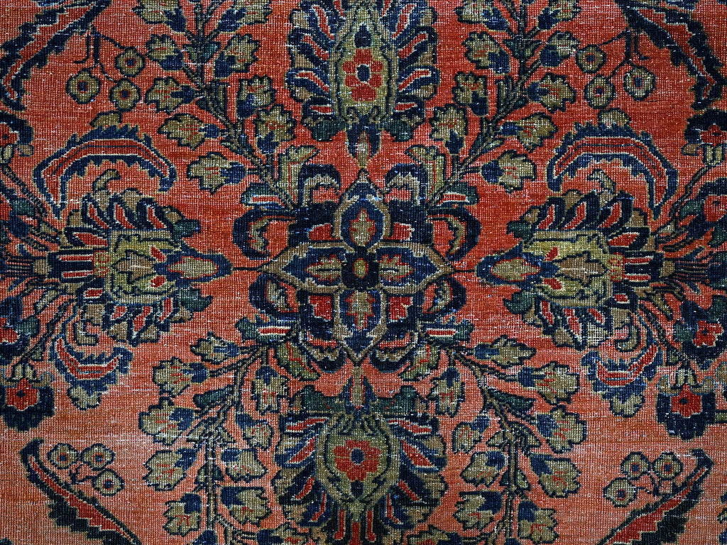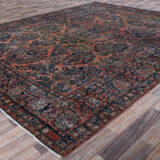Condition: Used Weave Type: Hand Knotted Shape: Rectangle Size: 8’8″ x 11’6″ Main Color: Red Border Color: Red Other Colors: Green, Navy, Brown Top Material: Wool Base Material: Cotton Collection: Antique Rug Number: MOA1021367
