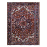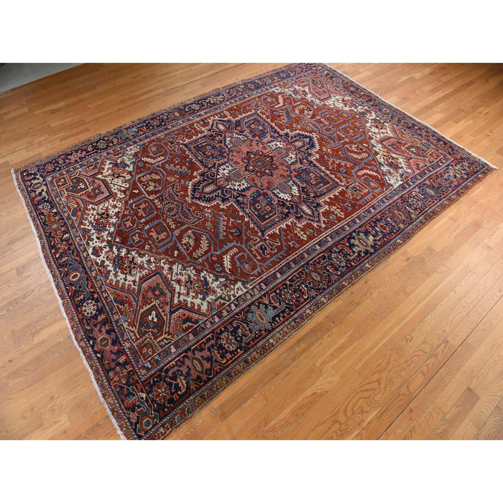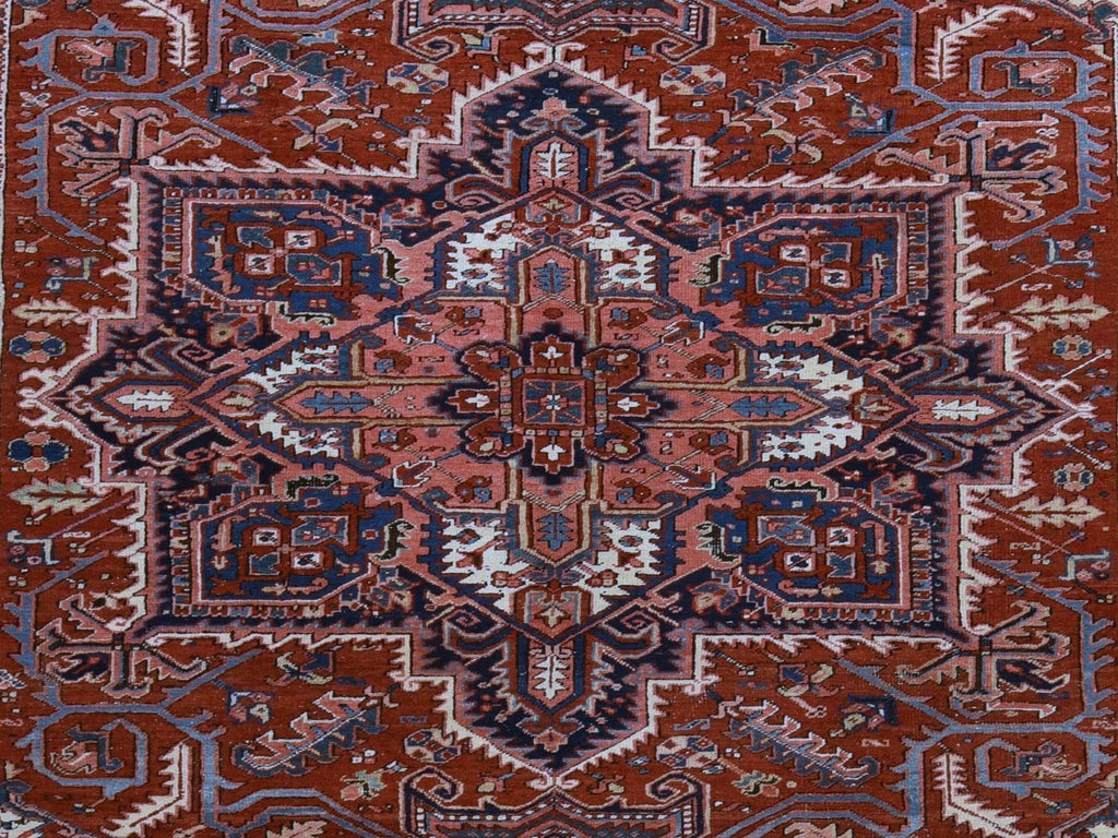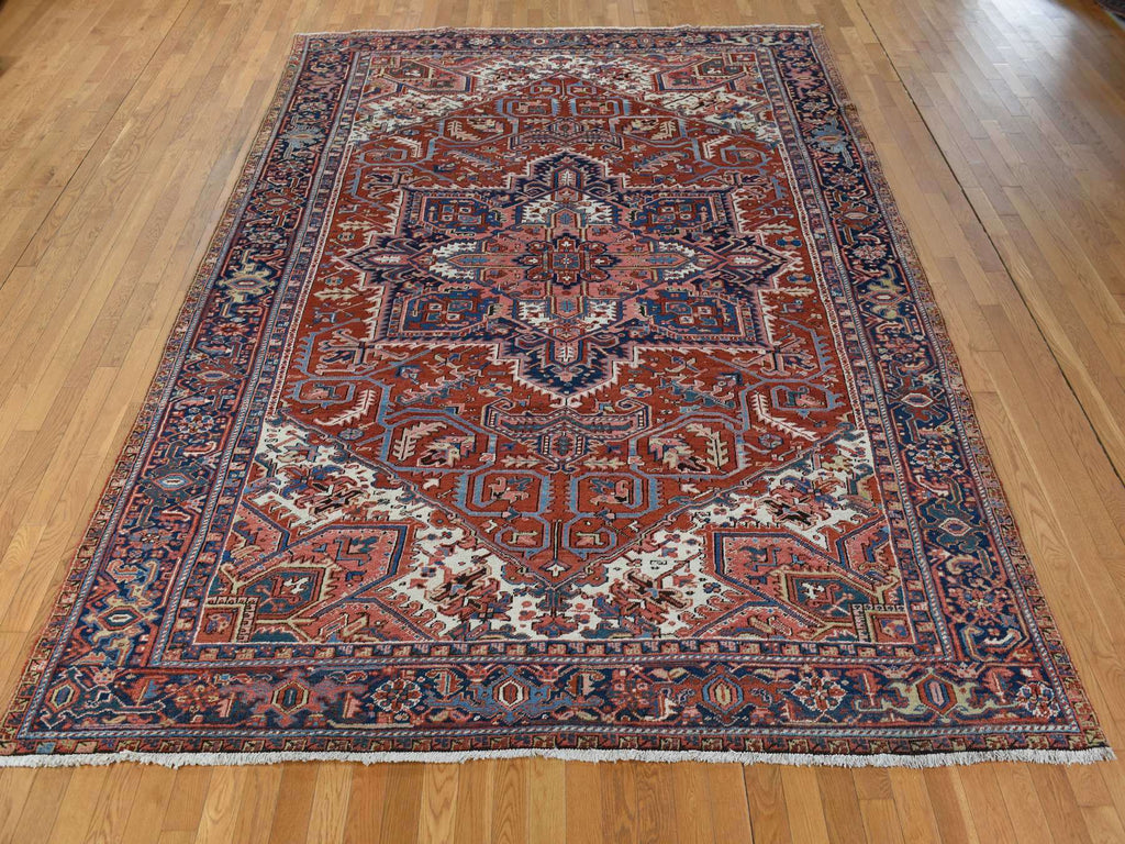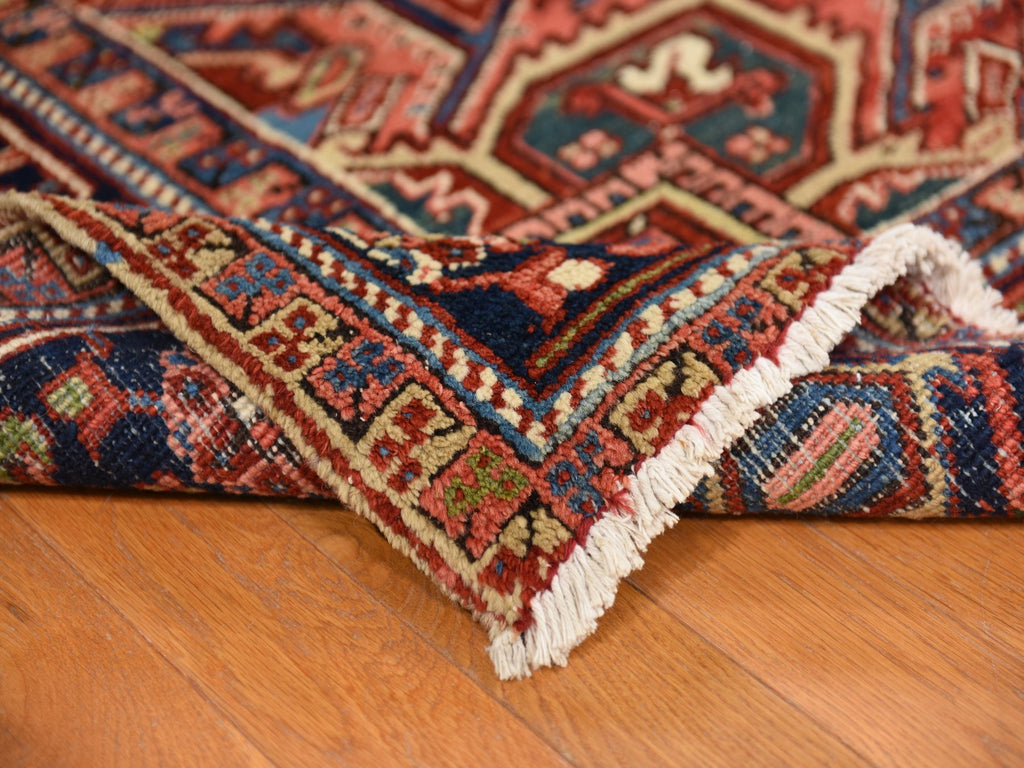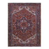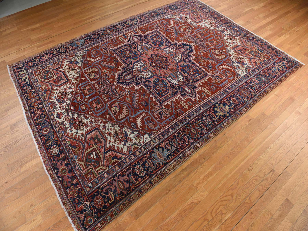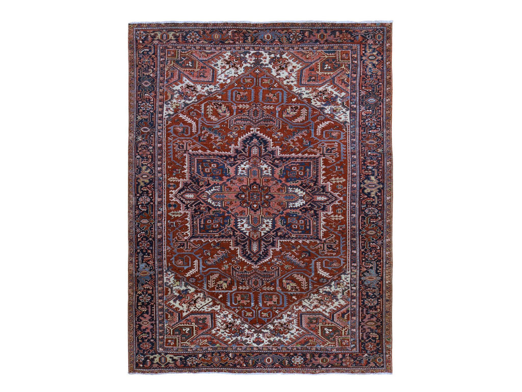 Condition: Used Weave Type: Hand Knotted Shape: Rectangle Size: 8’9″ x 12’3″ Main Color: Red Border Color: Midnight Blue Other Colors: Denim Blue, Pink, Ivory, Brown, Orange Top Material: Wool Base Material: Cotton Collection: Antique Rug Number: MOA10278324