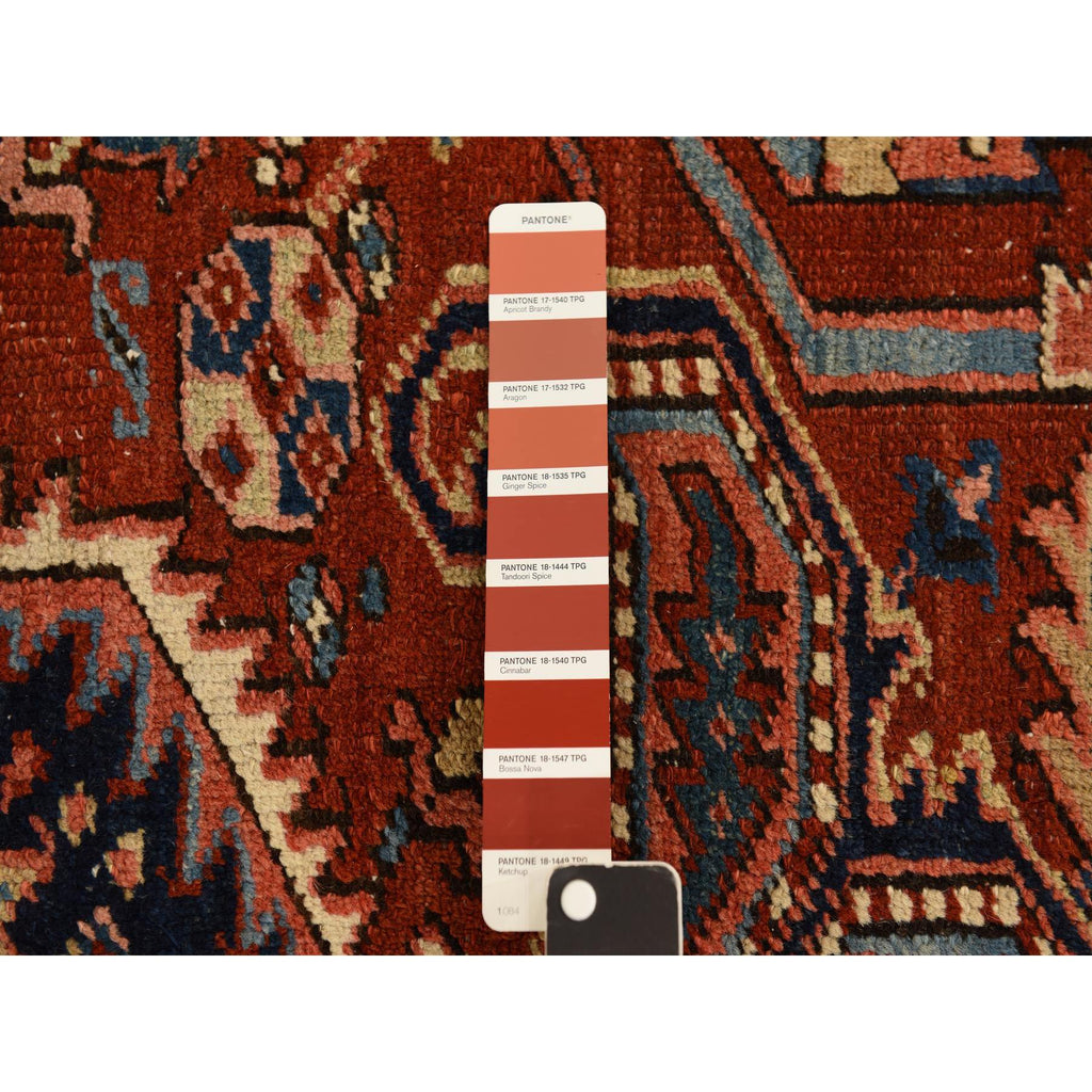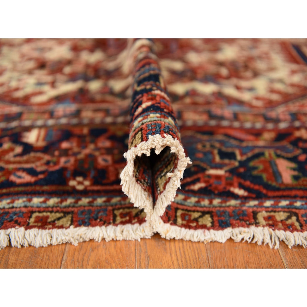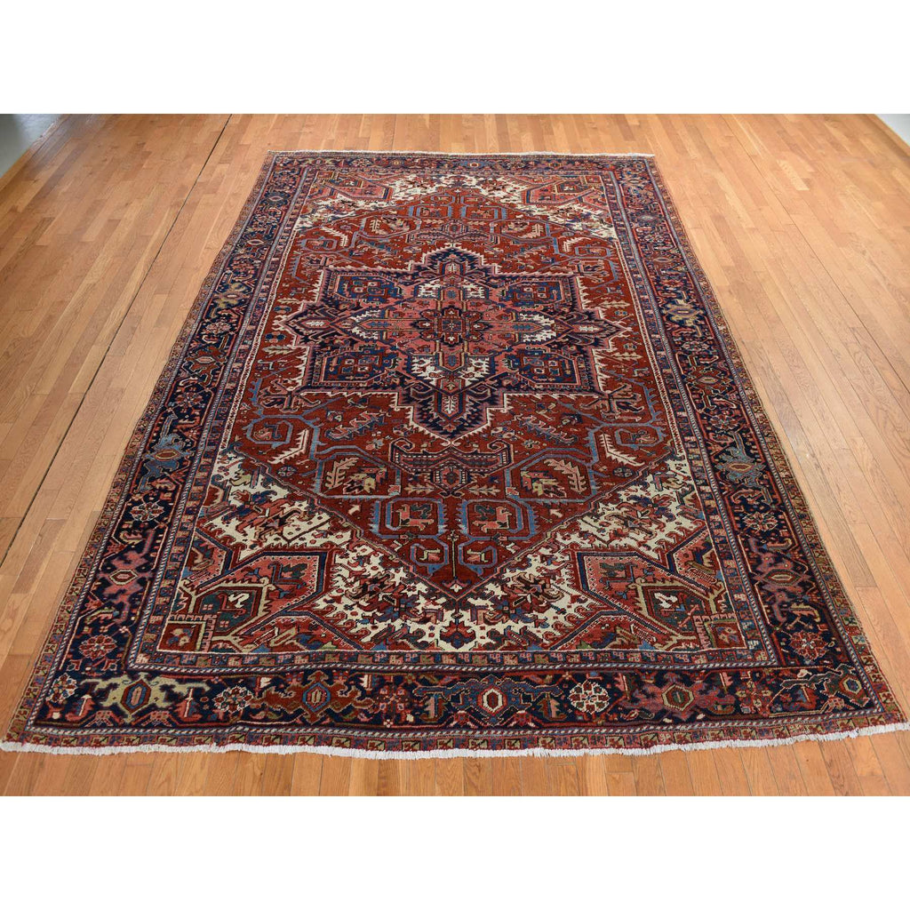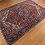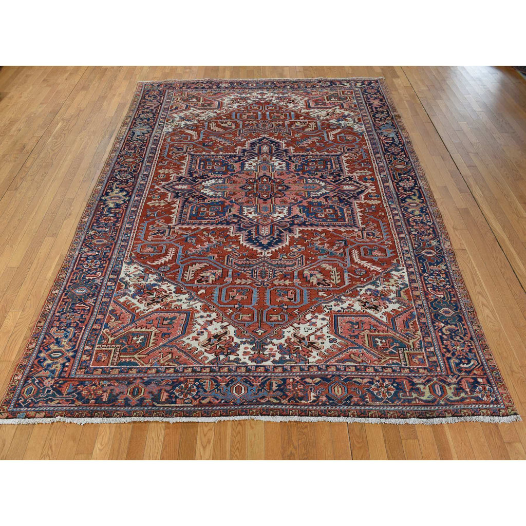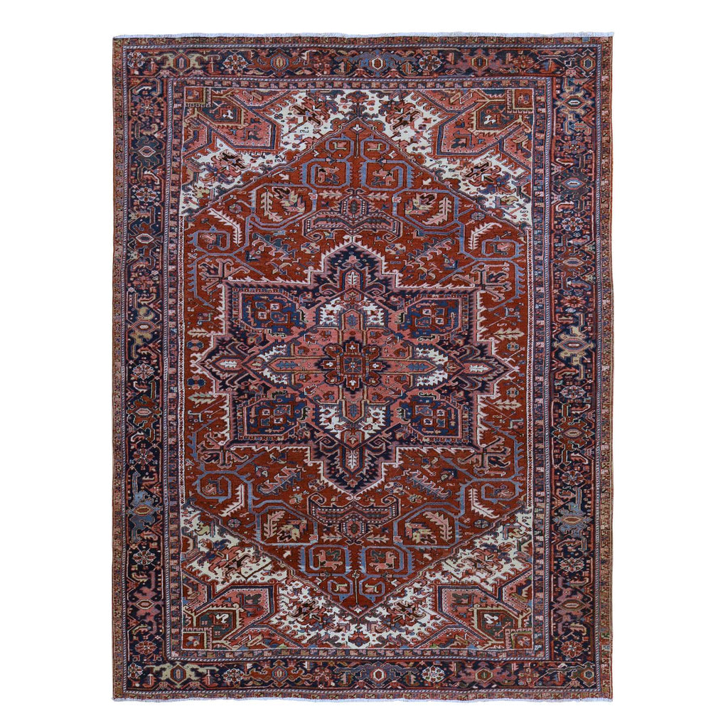 Condition: Used Weave Type: Hand Knotted Shape: Rectangle Size: 8’9″ x 12’3″ Main Color: Red Border Color: Midnight Blue Other Colors: Denim Blue, Pink, Ivory, Brown, Orange Top Material: Wool Base Material: Cotton Collection: Antique Rug Number: MOA10278324