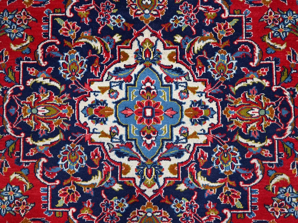 Condition: Used Weave Type: Hand Knotted Shape: Rectangle Size: 9’5″ x 13’0″ Main Color: Red Border Color: Blue Other Colors: Blue, Pink, Ivory, Green, Brown, Yellow, Denim Blue, Top Material: Wool Base Material: Cotton Collection: Persian Rug Number: MOA10286699