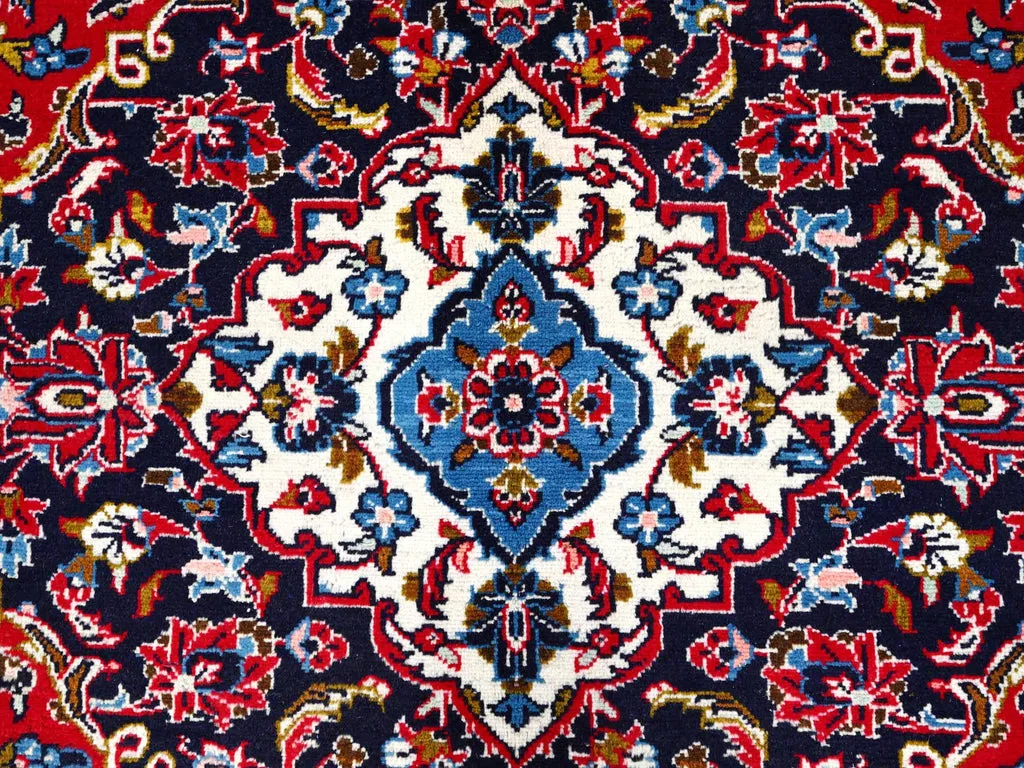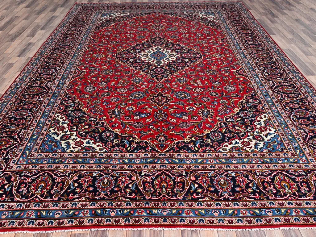 Condition: Used Weave Type: Hand Knotted Shape: Rectangle Size: 9’6″ x 12’10” Main Color: Red Border Color: Blue Other Colors: Light Blue, Pink, Ivory, Green, Brown, Yellow, Denim Blue Top Material: Wool Base Material: Cotton Collection: Persian Rug Number: MOA10286426