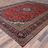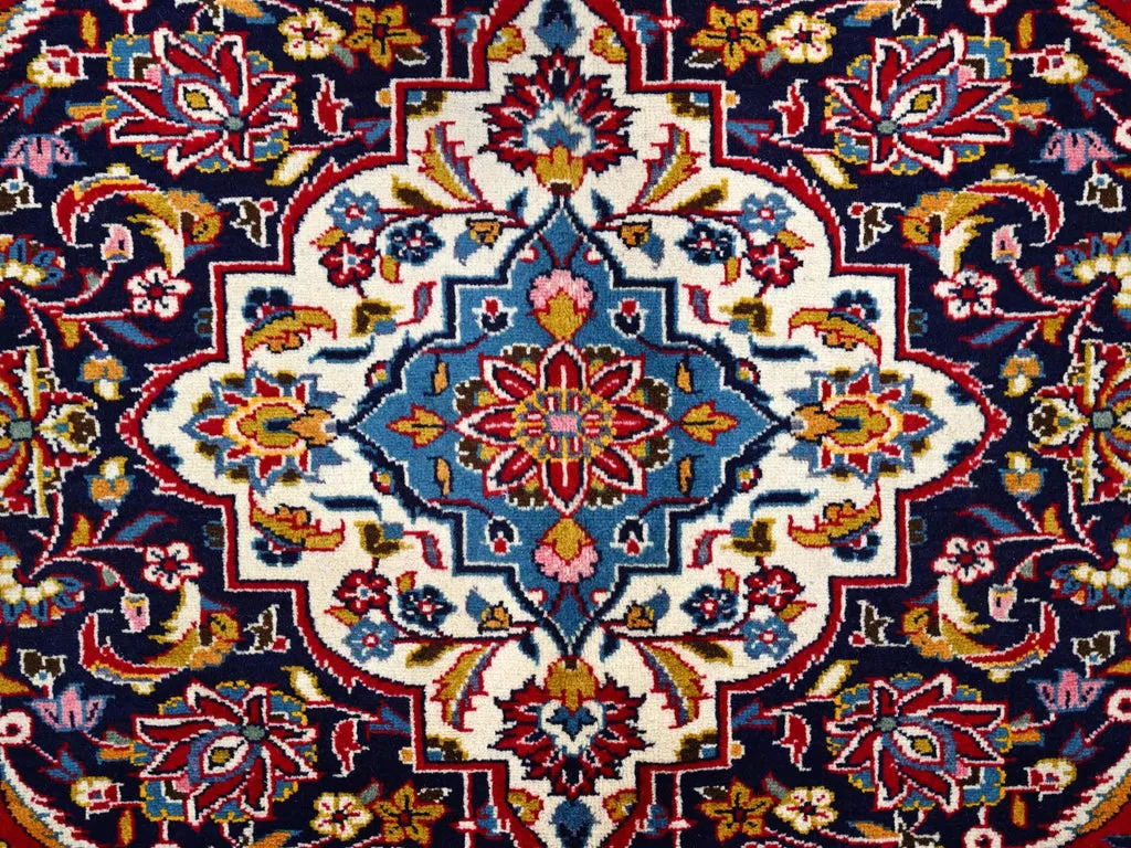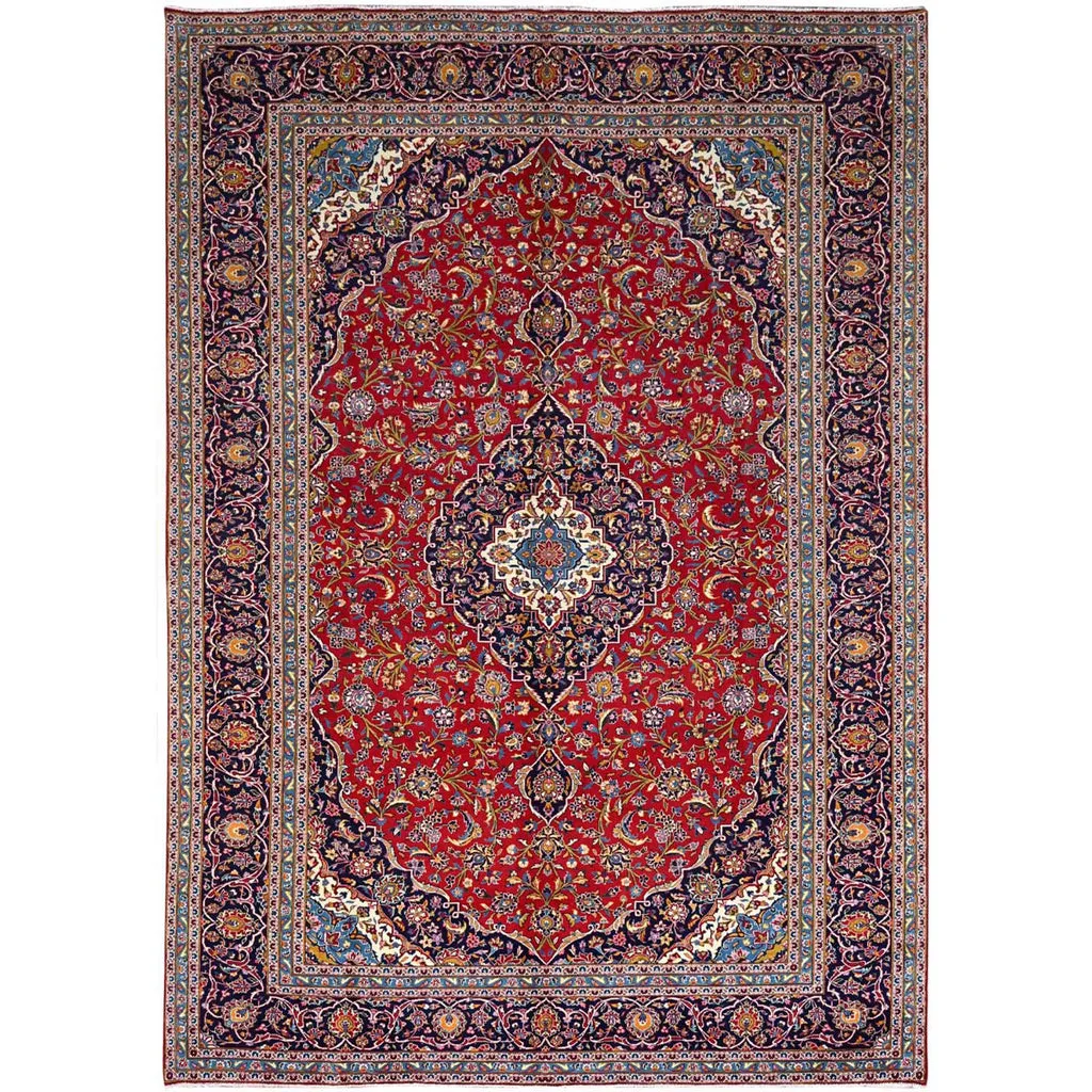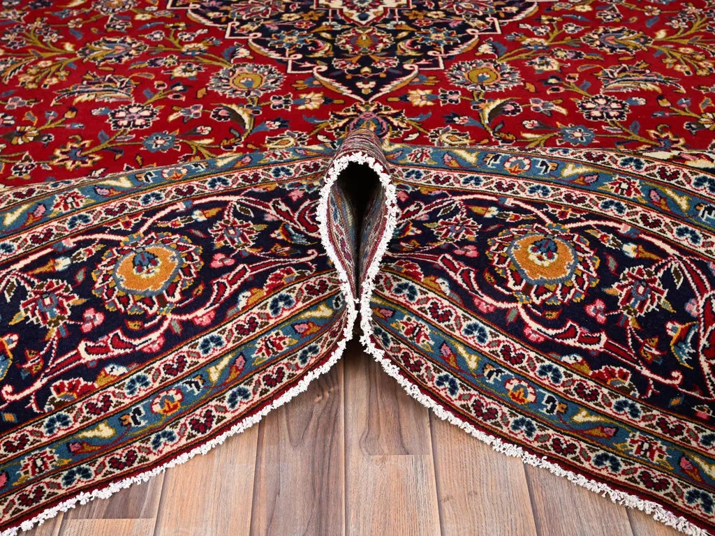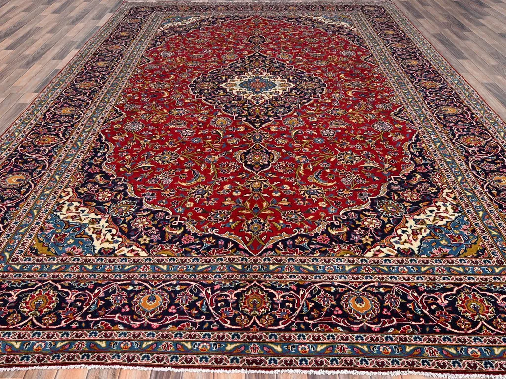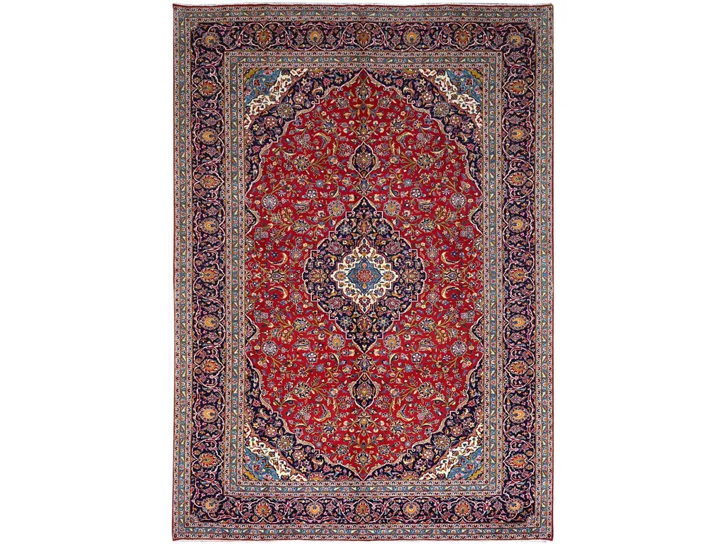 Condition: Used Weave Type: Hand Knotted Shape: Rectangle Size: 9’8″ x 12’10” Main Color: Red Border Color: Blue Other Colors: Pink, Ivory, Green, Brown, Yellow, Denim Blue Top Material: Wool Base Material: Cotton Collection: Persian Rug Number: MOA10286427