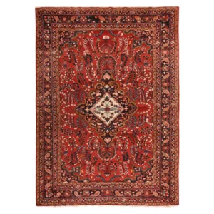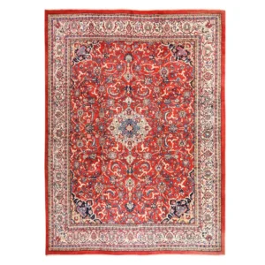 Condition: Used Weave Type: Hand Knotted Shape: Rectangle Size: 9’9″ x 12’10” Main Color: Red Border Color: Midnight Blue Other Colors: Brown, Blue, Green, Ivory, Yellow, Pink, Beige Top Material: Wool Base Material: Cotton Collection: Persian Rug Number: MOA10278413