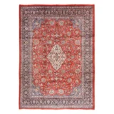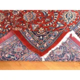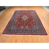 Condition: Used Weave Type: Hand Knotted Shape: Rectangle Size: 9’9″ x 13’1″ Main Color: Red Border Color: Midnight Blue Other Colors: Light Blue, Ivory, Peach Top Material: Wool Base Material: Cotton Collection: Persian Rug Number: MOA10278422