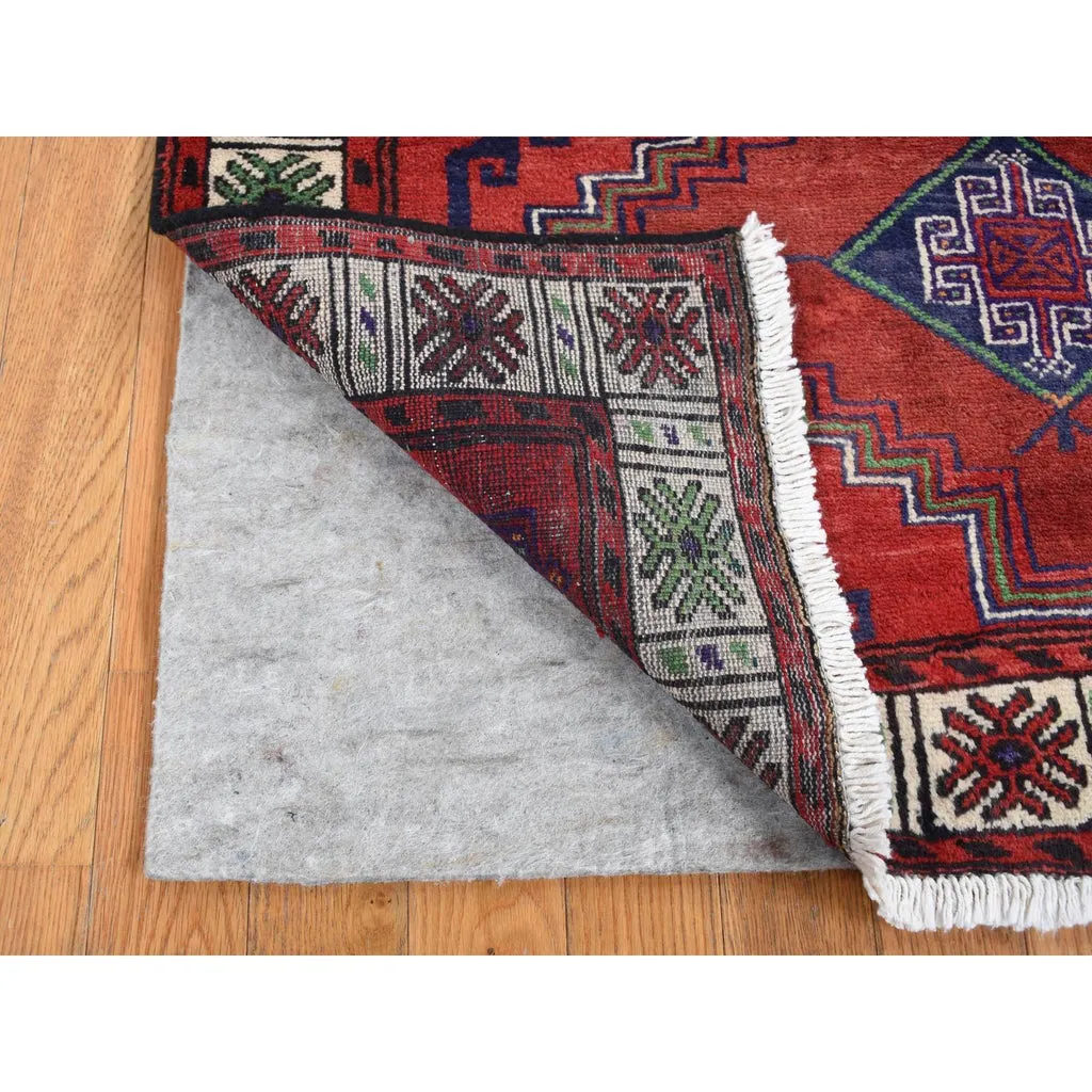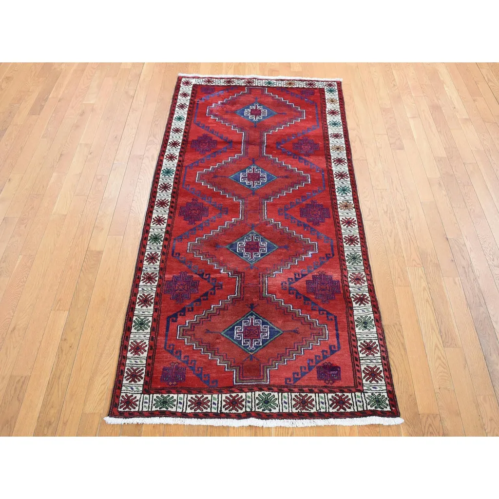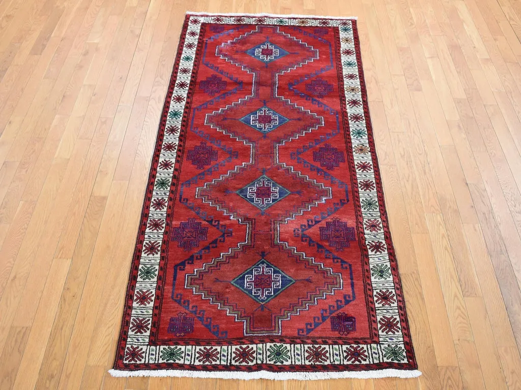 Condition: Used Weave Type: Hand Knotted Shape: Runner Size: 3’8″ x 7’9″ Main Color: Red Border Color: Ivory Other Colors: Blue, Green, Black Top Material: Wool Base Material: Cotton Collection: Persian Rug Number: MOA10287443