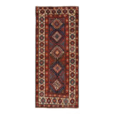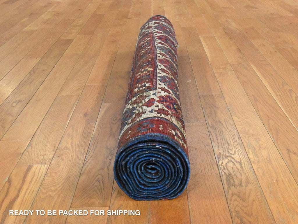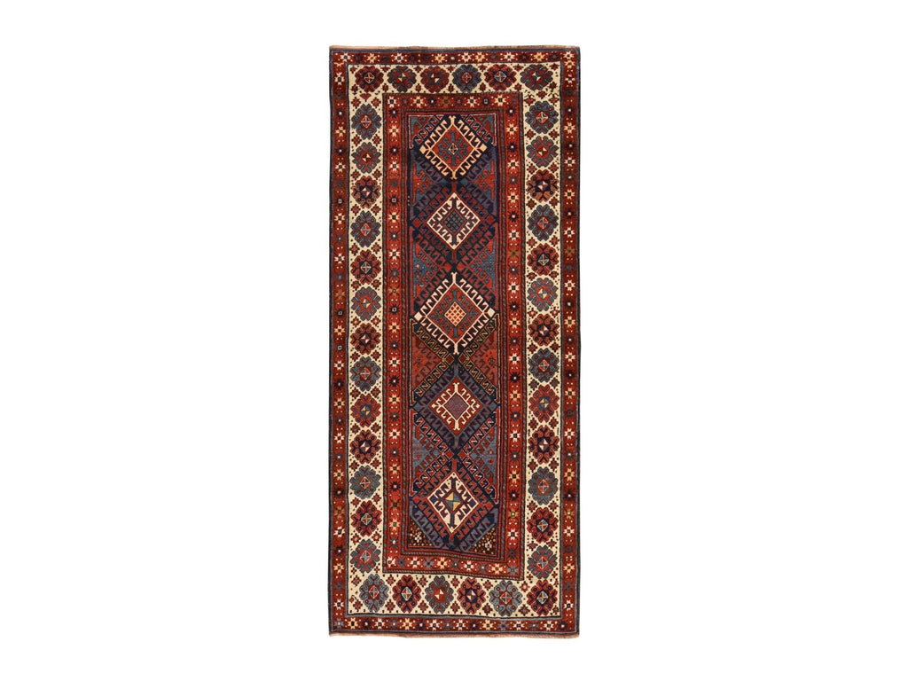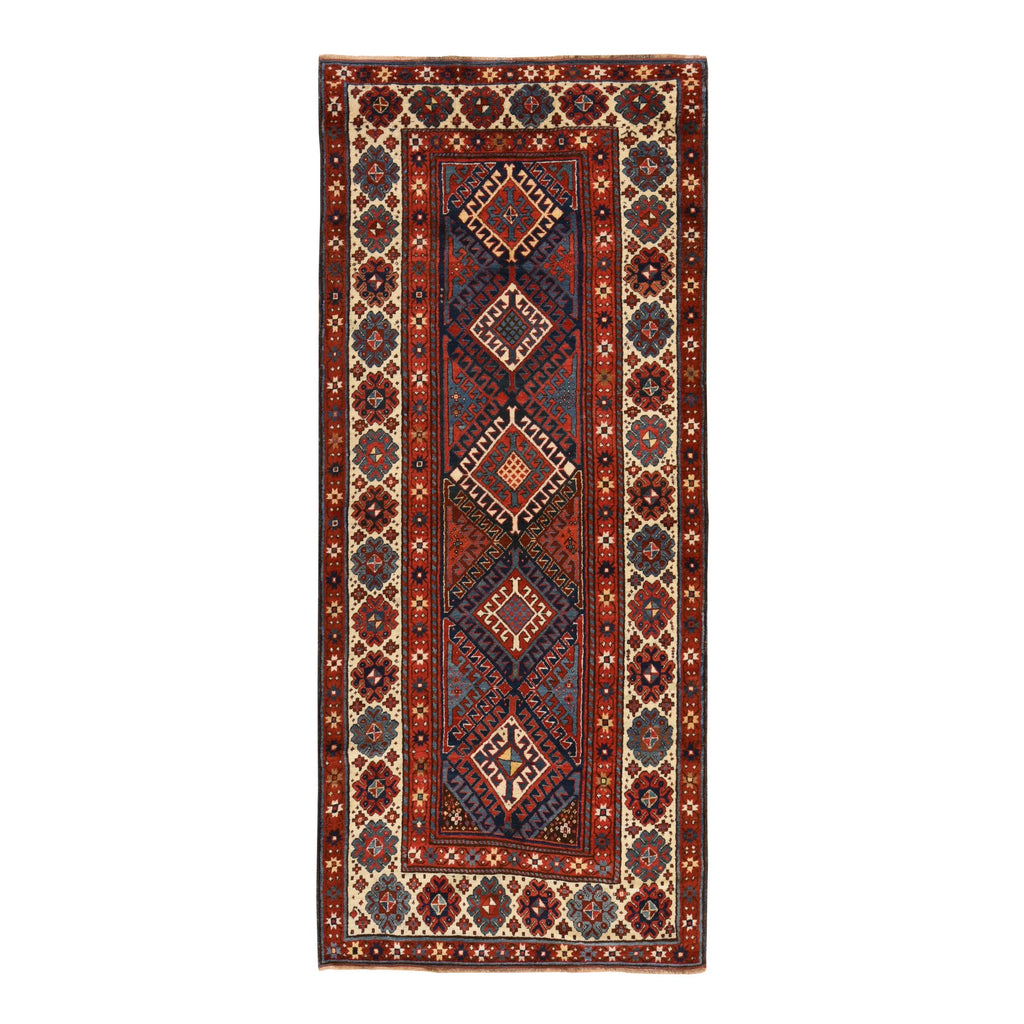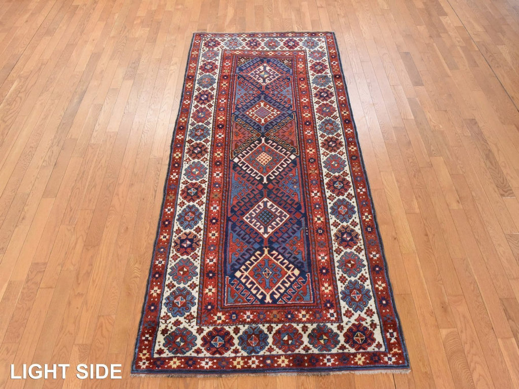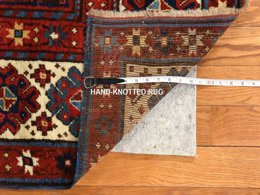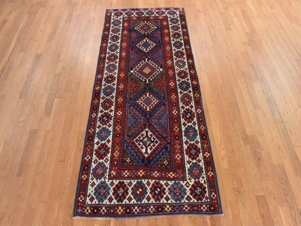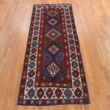 Condition: Used Weave Type: Hand Knotted Shape: Runner Size: 4’0″ x 9’4″ Main Color: Red Border Color: Ivory Other Colors: Brown, Blue Top Material: Wool Base Material: Cotton Collection: Antique Rug Number: MOA10278451