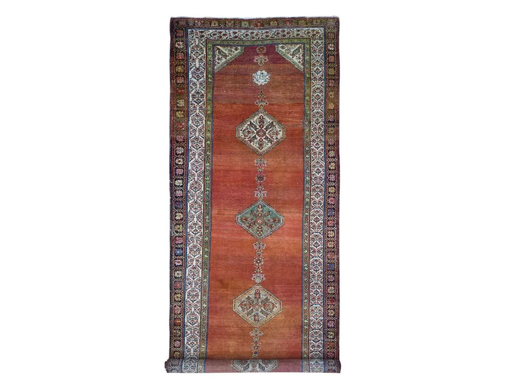 Condition: Used Weave Type: Hand Knotted Shape: Runner Size: 4’8″ x 12’0″ Main Color: Red Border Color: Ivory Other Colors: Lime, Yellow, Pink, Navy Blue, Black, Orange, Green Top Material: Wool Base Material: Cotton Collection: Persian Rug Number: MOA10266657
