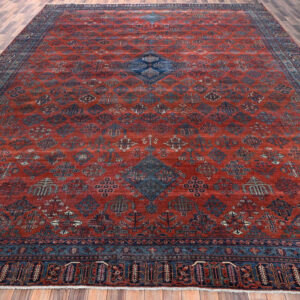 Condition: Used Weave Type: Hand Knotted Shape: Square Size: 5’0″ x 5’2″ Main Color: Red Border Color: Rust Red Other Colors: Rust Red, Ivory, Rose Red, Light Blue, Dark Blue, Gold, Green Top Material: Wool Base Material: Cotton Collection: Antique Rug Number: MOA10280294