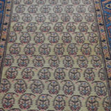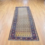 Condition: Used Weave Type: Hand Knotted Shape: Runner Size: 4’0″ x 10’3″ Main Color: Yellow Border Color: Blue Other Colors: Red, Brown, Black Top Material: Wool Base Material: Cotton Collection: Antique Rug Number: MOA10280058