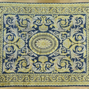 Vintage Hand Knotted Blue Silk Rectangle Oriental Rug 4’4″ x 6’8″