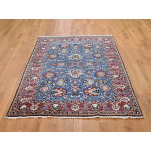 Vintage Hand Knotted Blue Wool Rectangle Oriental Rug 4’6″ x 5’6″