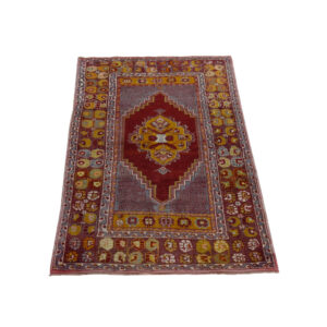 Vintage Hand Knotted Red Wool Rectangle Oriental Rug 3’5″ x 5’0″