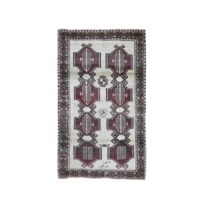 Vintage Hand Knotted Ivory Wool Rectangle Oriental Rug 2’8″ x 4’1″