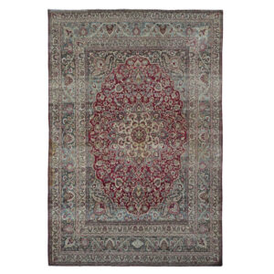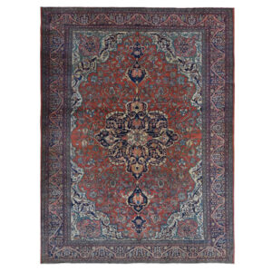 Vintage Hand Knotted Red Wool Rectangle Oriental Rug 8’9″ x 12’3″