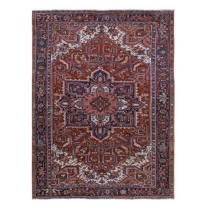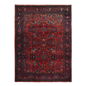 Vintage Hand Knotted Red Wool Rectangle Oriental Rug 8’9″ x 11’4″